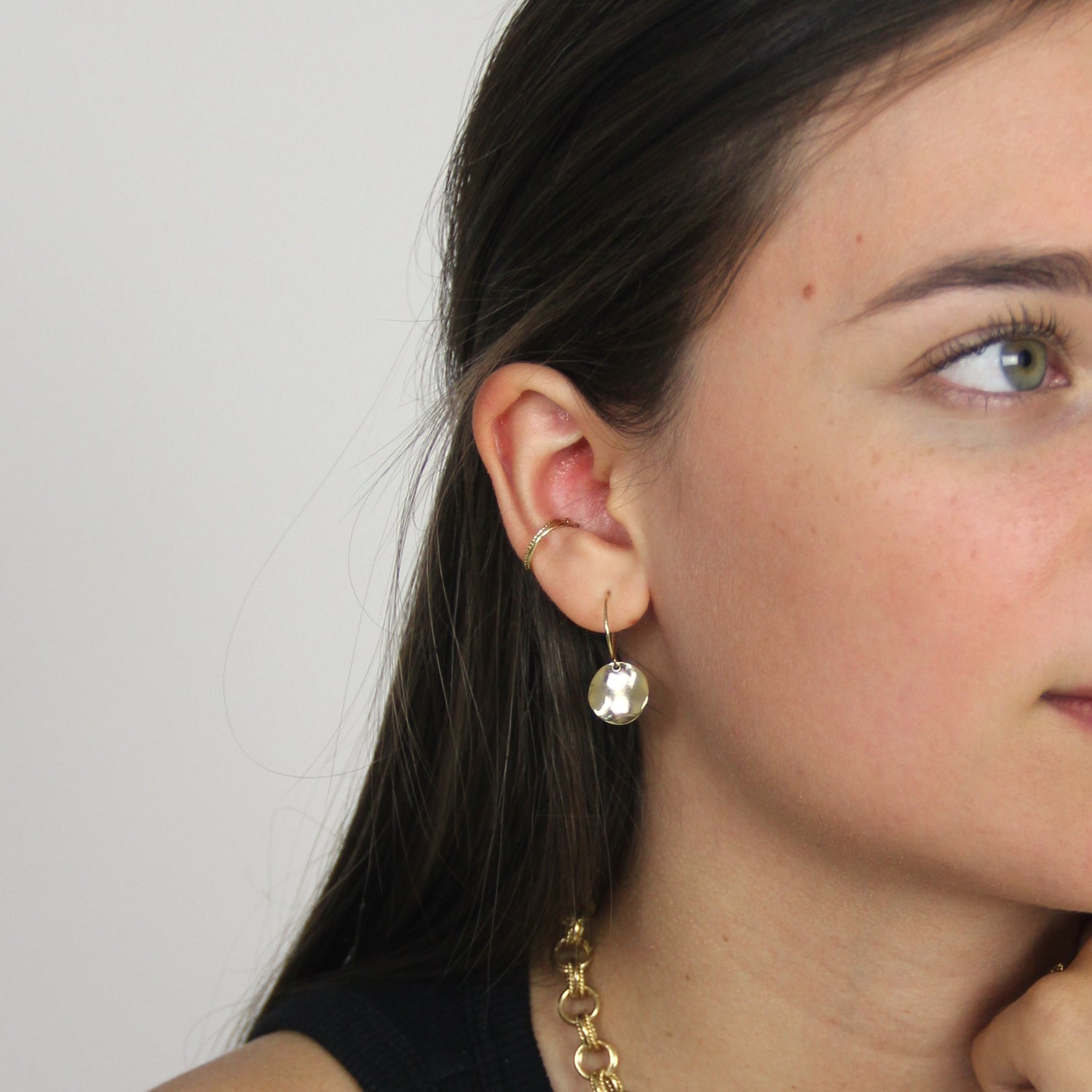 Capture the essence of the ocean’s rhythm with Adepte’s 'Belharra Pendant Hoop Earrings,' inspired by the famous waves of the Basque Country. These earrings feature a 0.6" hoop diameter paired with a 0.48" glossy and wavy medal that dances with the light. The 18k gold plating adds a touch of luxuriant warmth, ensuring that these pieces aren't just accessories but conversation starters. Handcrafted in our atelier in Toulouse, each pair of earrings carries with it the spirit of French craftsmanship and an homage to the wild beauty of Belharra.