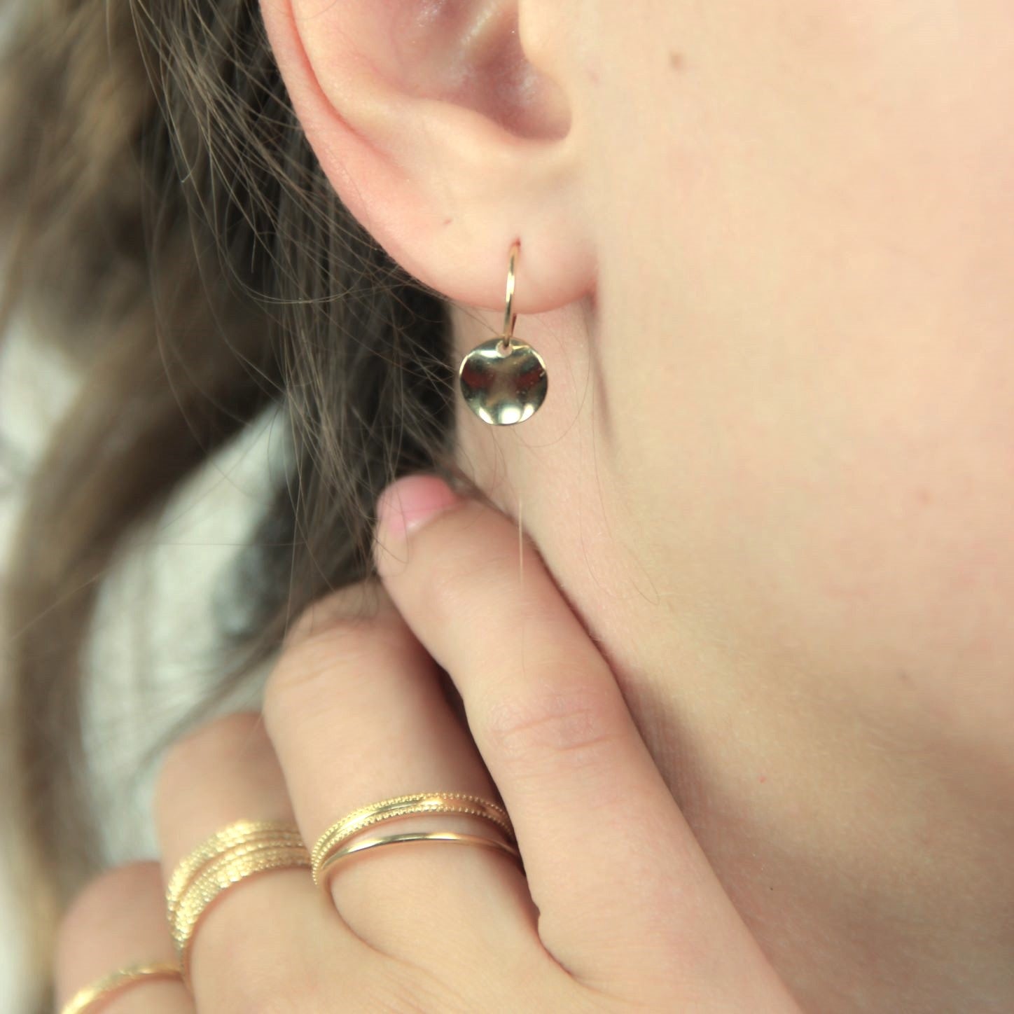Embrace the spirited essence of the Basque Country's coast with the 'Belharra Small Pendant Hoop Earrings' by Adepte. These earrings, with a hoop diameter of 0.48" and a medal diameter of 0.32", are a tribute to the majestic Belharra wave—known for its natural power and grace. The 18k gold plating enhances the earrings with a refined glow, while the small glossy medals mirror the ocean's playful dance. Each pair, lovingly handcrafted in our Toulouse workshop, is a nod to the adventurous spirit of the Basque seascape, making them a perfect piece for those who carry the wildness of the waves in their hearts.