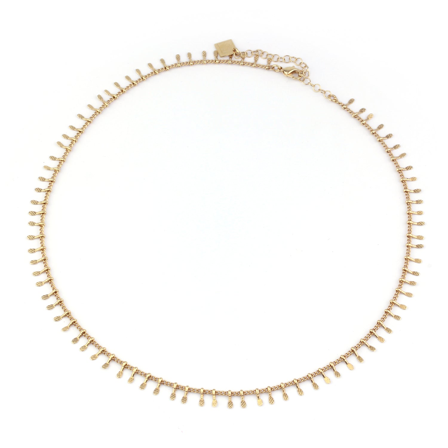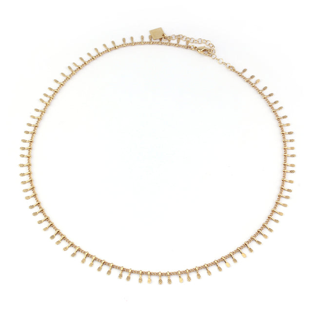 Embrace the charm of the Italian coast with the Adepte Naples Fringe Chain Necklace. This exquisite piece, plated in 18k gold, captures the spirit of Naples with its radiant fringe details that echo the city's vibrant energy. The adjustable length from 15.3" to 17.3" allows for perfect positioning, making it a versatile addition to any wardrobe. Crafted in the esteemed workshop of Toulouse, this necklace is a testament to the legacy of French jewelry artisanship — a fusion of elegance, precision, and flair that Adepte is renowned for.