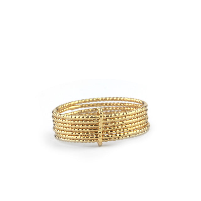 Meet the 'Sophie 7 Days Ring' from Adepte – a ring for every day and every occasion. Available in sizes 5 to 8, this exquisite piece is designed to offer you a versatile fit with its multi-band elegance. The 0.28" width, plated in radiant 18k gold, provides a substantial yet refined look, perfect for stacking or wearing individually. Each band, crafted in our atelier in Toulouse, is a tribute to the simplicity and grace of French design, offering a classic touch to any ensemble. Not adjustable but perfectly sized, the Sophie 7 Days Ring is a commitment to both comfort and timeless style.