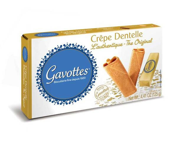 The Gavottes biscuit factory was founded in 1920 in the town of Quimper, Brittany. The crispy, delicate crêpes dentelles have been popular ever since. In 1886, in Quimper, Brittany, Marie- Catherine Cornic was making crepes on her kitchen stove. Distracted by a multitude of tasks, she remembered about the last crepe way too late. But at the time, no food could be wasted so she decided to still eat the crepe and was actually so surprised by the crusty and golden lightness of her “creation”. This is how the crepe was born and was later named “Gavottes” when they created the factory in 1920. Today, over a century after its creation, Gavottes are known and loved in all of France and many countries across the world!