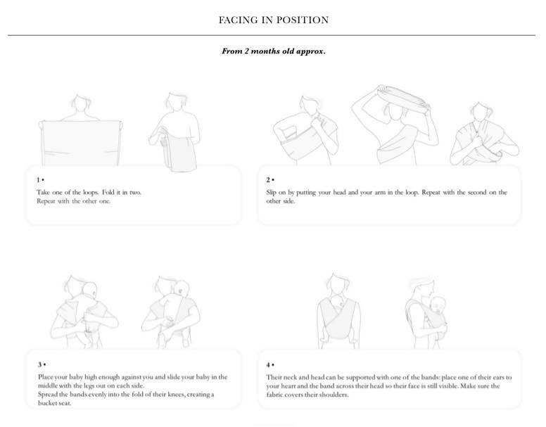 Studio Romeo's baby carrier is a practical and easy alternative to hard-to-knot slings and baby carriers. Without knots, straps, rings or clips, it is simply made of two loops of fabric you put on criss-cross on either side of the shoulders and that's it! Resistant, very comfortable and carefully tested, the baby carrier will perfectly maintain baby's back and head.