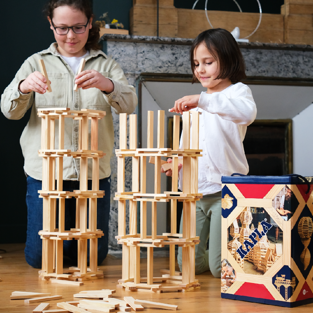 KAPLA® is the original wooden building set made from 100% natural pine wood sourced sustainably from the Landes forest in the south of France. With its simple, identical planks, KAPLA® sparks creativity, imagination, and hours of open-ended play for children and adults alike — all while celebrating French craftsmanship and quality.