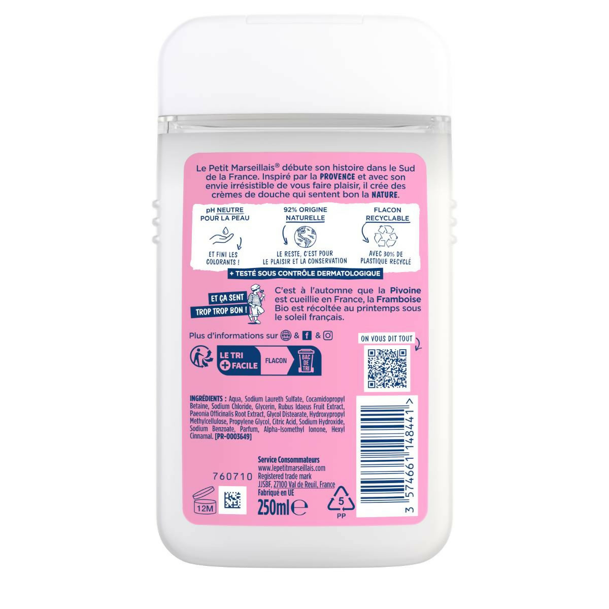 Le Petit Marseillais Extra Gentle Cream Shower Raspberry & Peony 250ml is a shower cream with neutral pH for the skin that gently cleanses the skin thanks to its light foam that releases a fruity and refined fragrance. It is enriched with moisturizing agent of vegetable origin.