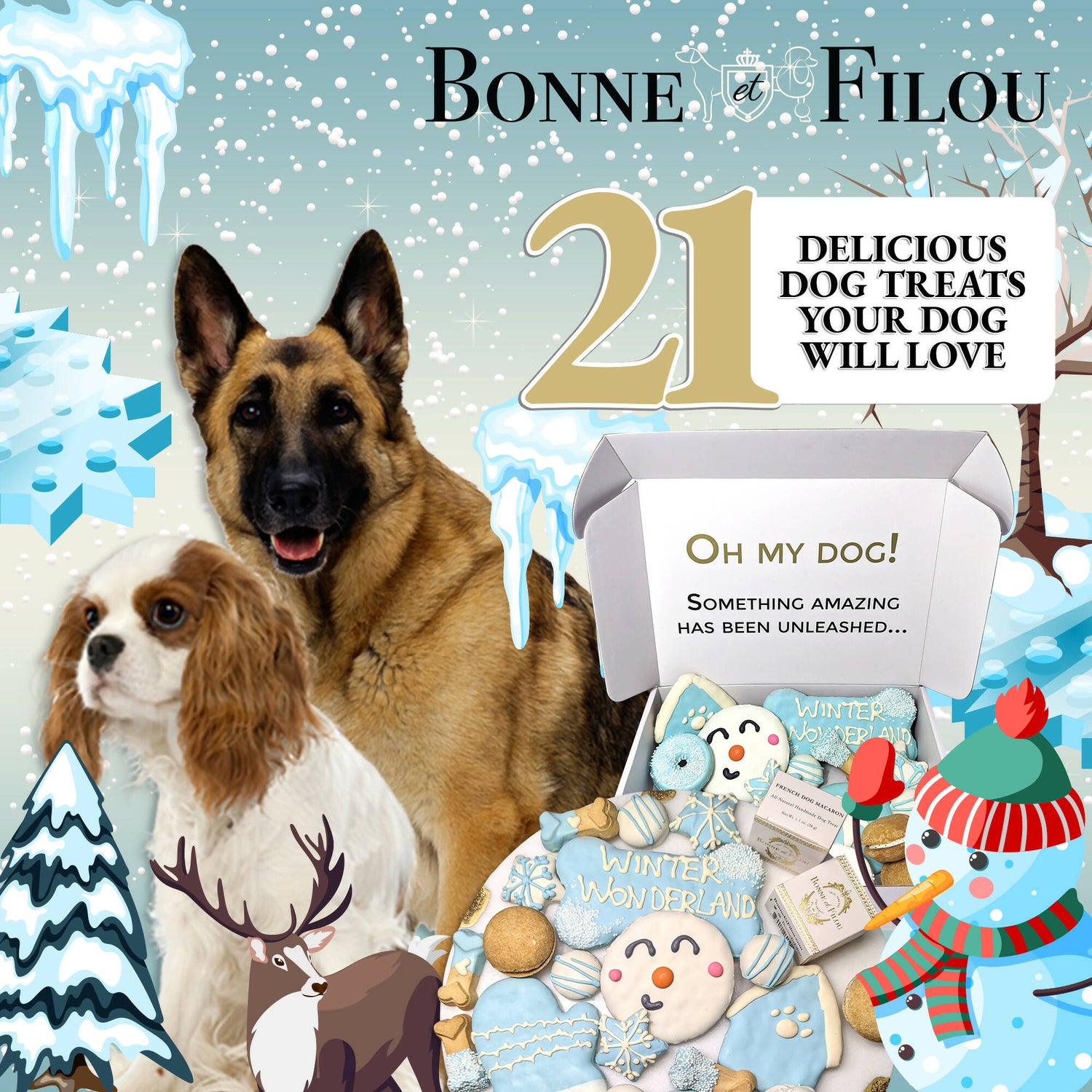 • Includes 21 themed treats including snowman & snowflakes treats, winter biscuits, and dog macarons