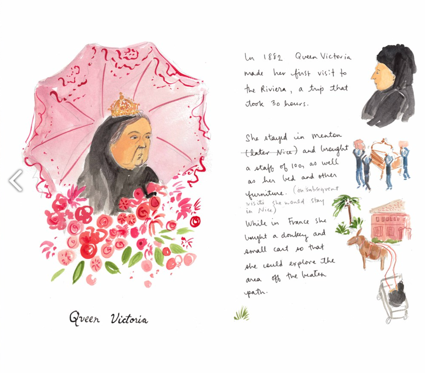 Saturated with the limpid colors of sea and sun, the dazzling greens of verdant gardens, and the rose and ochre of sunbaked villas and joyous with paisleys and blue-striped sailor’s shirts and the riotous look of a patisserie window filled with confections, Travels Through the French Riviera is a gift book of visual wonder, the souvenir every Francophile will want. But it is also a quirky yet singularly useful travel guide, whether showing how to order coffee like a local, plan a beach day at Menton, or hike the Cap Ferrat peninsula or where to taste the best ice cream in Antibes (at Amarena—try the mint).