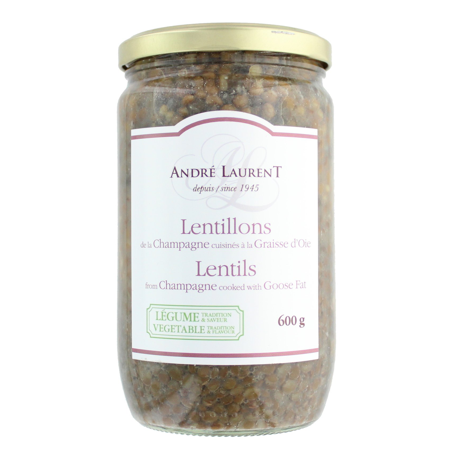 Since 1945, Andre Laurent has developed a whole range of cooked vegetables. Source of vegetable proteins, fiber and mineral salts, André Laurent lentils from Champagne cooked in goose fat contribute to a balanced, digestible, and tasty diet. à