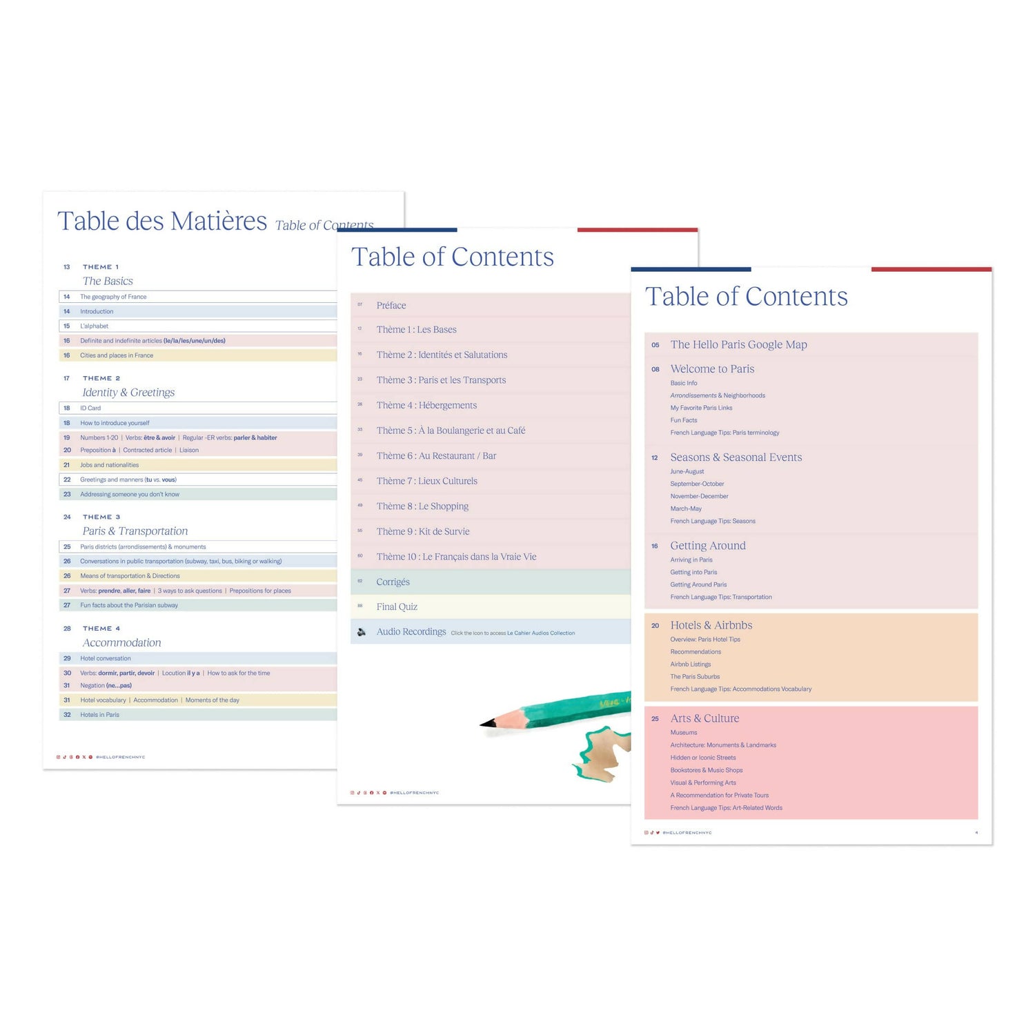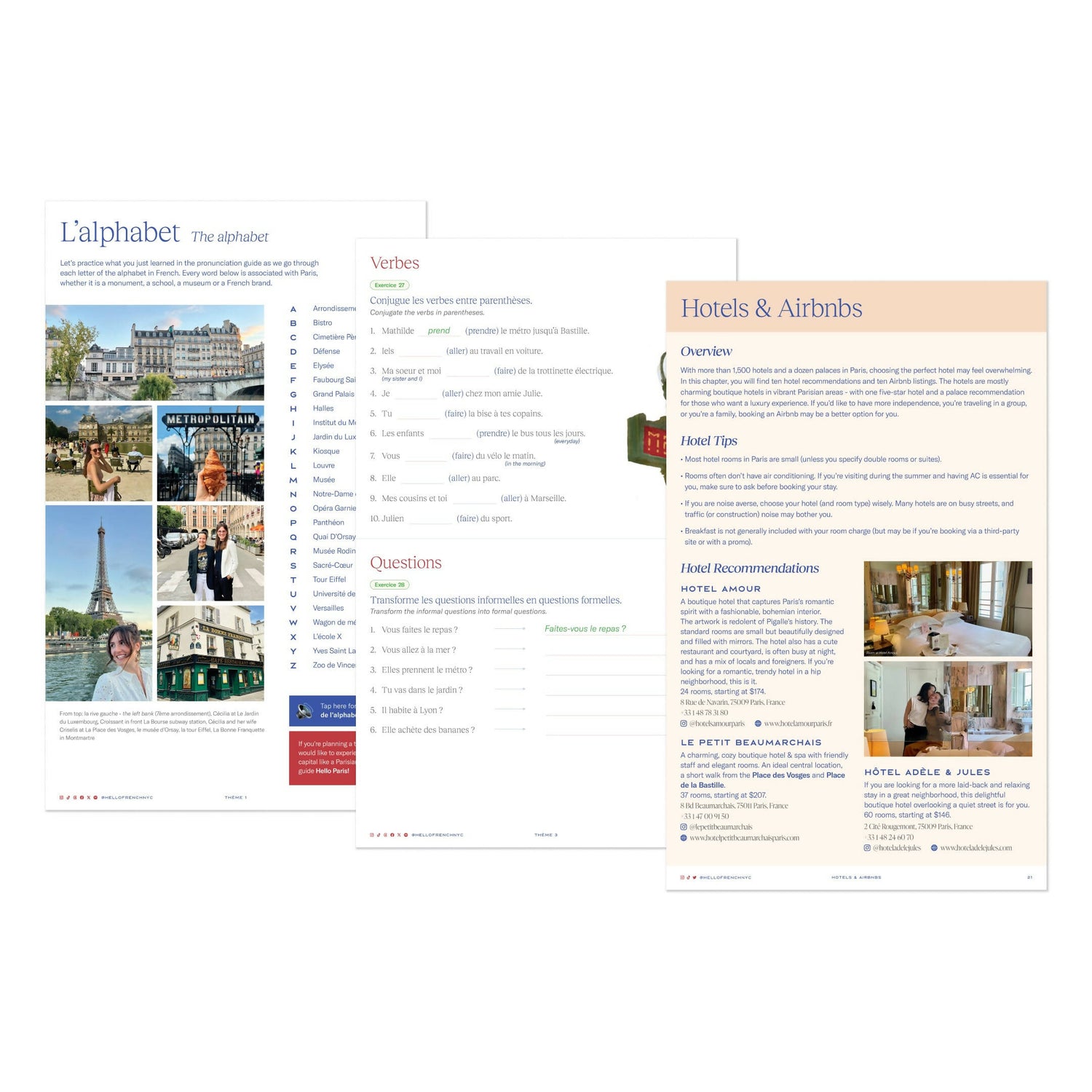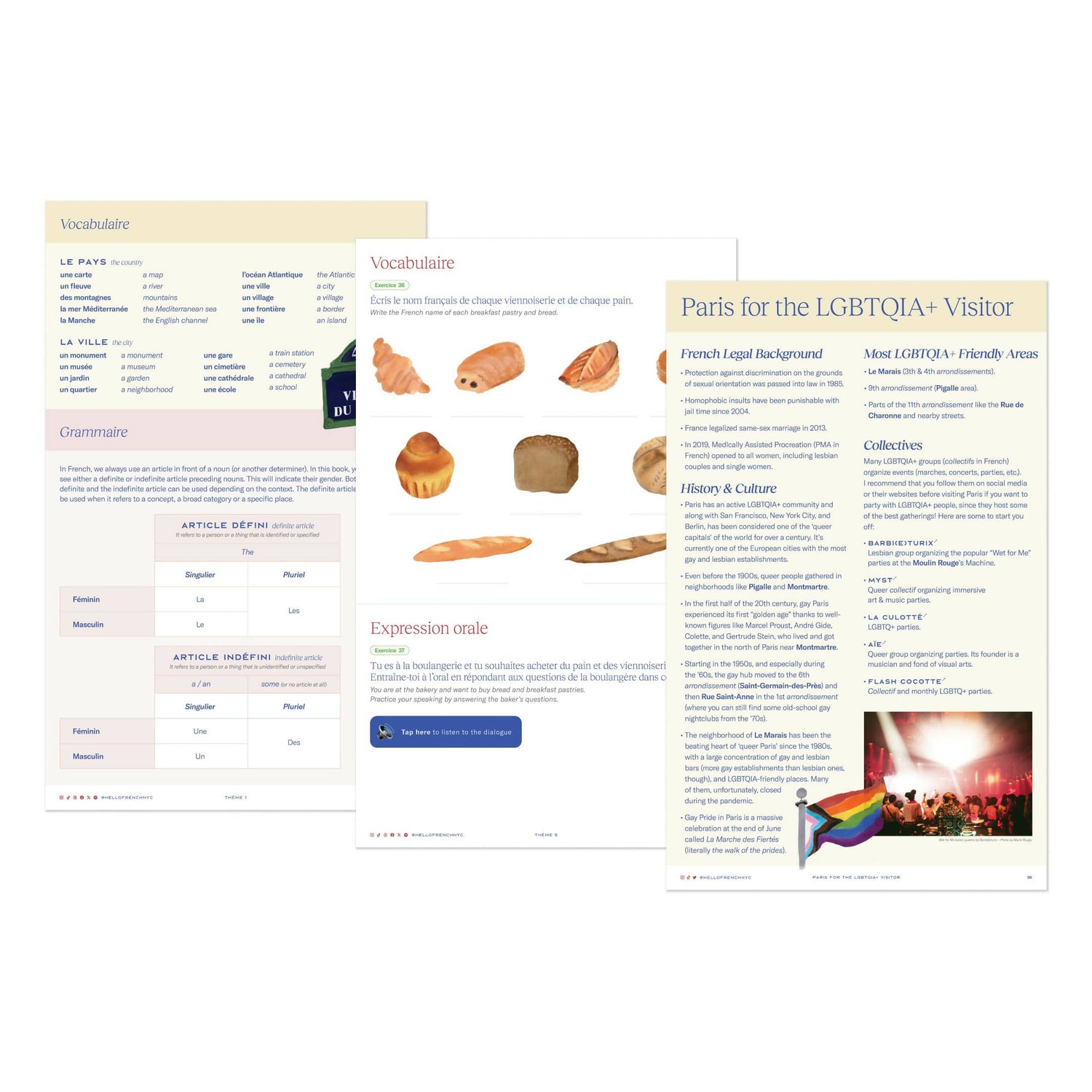 The Super Bundle is the perfect way to prepare for a trip to France, and the perfect travel companion once you’re in Paris. It features three of Hello French’s most loved digital learning resources.