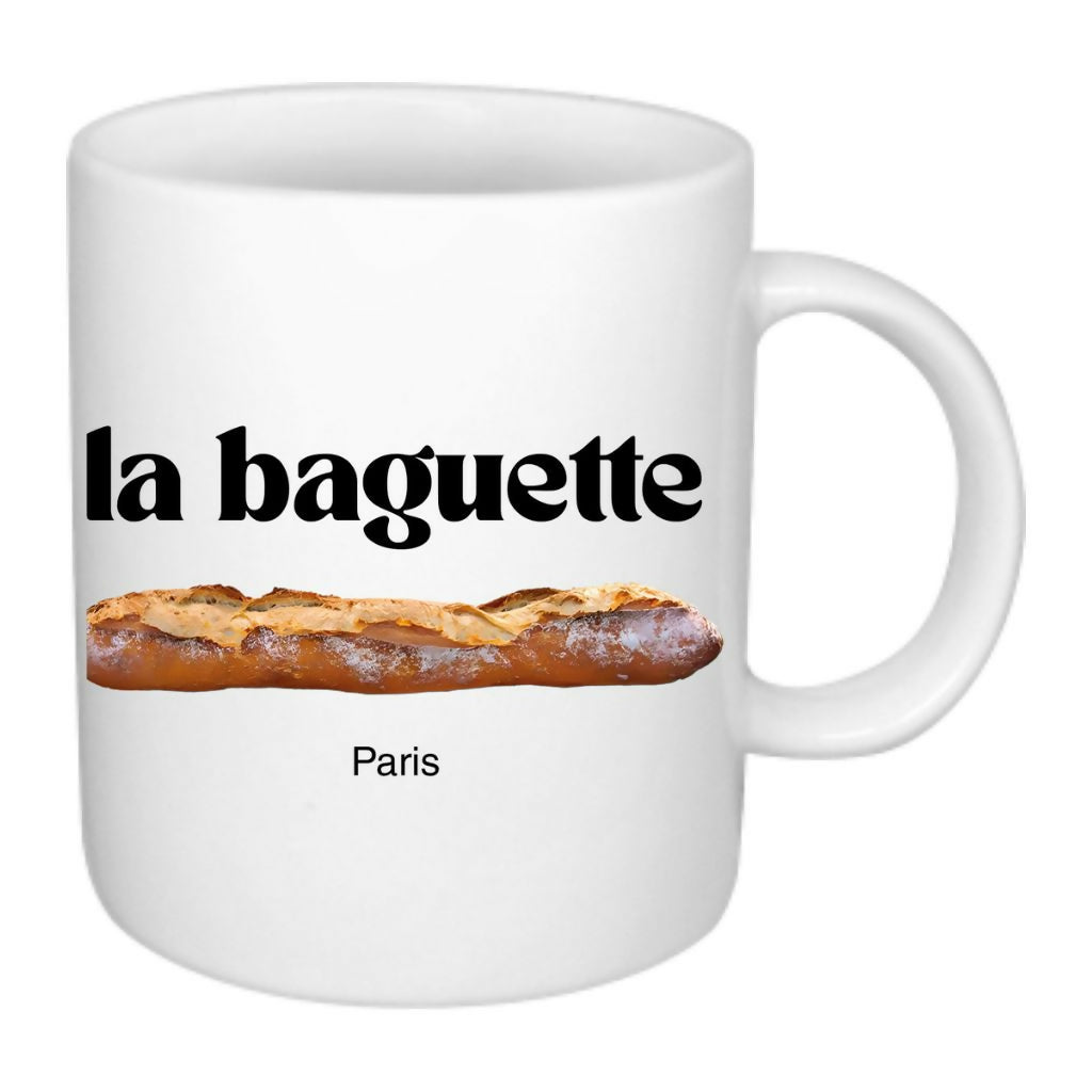 Featuring a crisp, high-resolution photo of a golden baguette, it’s bold, iconic, and effortlessly French. Whether you're sipping espresso at your desk or tea in bed, this mug brings a bite of Paris to every sip.