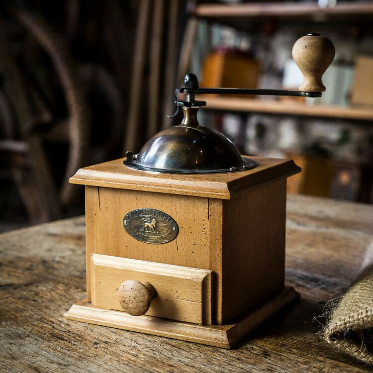 Crafted from beech wood, this high-quality piece combines durability with beautiful design. Its square body houses a small drawer to catch the freshly ground coffee, while the adjustable metal wheel beneath the handle lets you set the grind anywhere from fine to coarse. Whether for cappuccino, espresso, filter coffee, or cold brew, the Nostalgie releases the full aroma of your beans for a superior coffee experience.