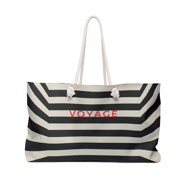 Introducing a stylish VOYAGE Weekender Bag that combines functionality with a chic design. This spacious bag, measuring 24" x 13", is perfect for your weekend getaways, gym trips, or everyday errands. Crafted with 100% spun polyester, it boasts a wrinkle-free exterior and is lightweight yet durable, making it the ideal companion for travel.
