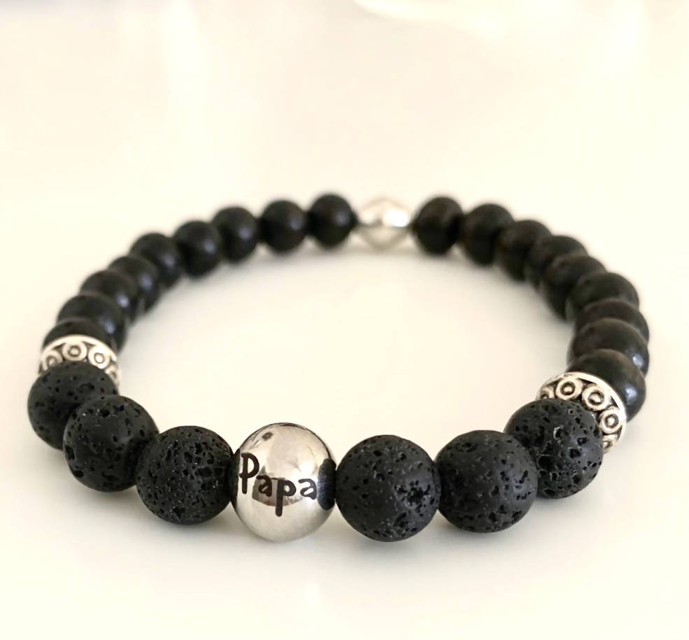 This bracelet, set with a laser engraved "Papa" bead, is the perfect gift for Father's Day.