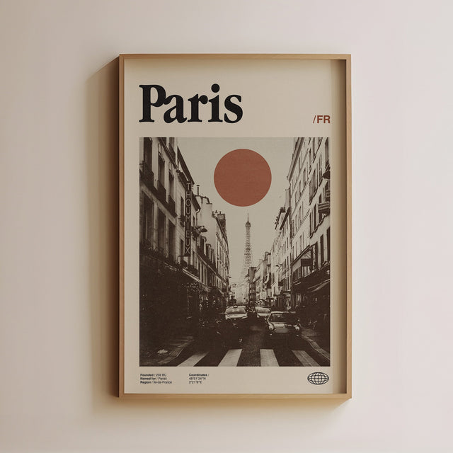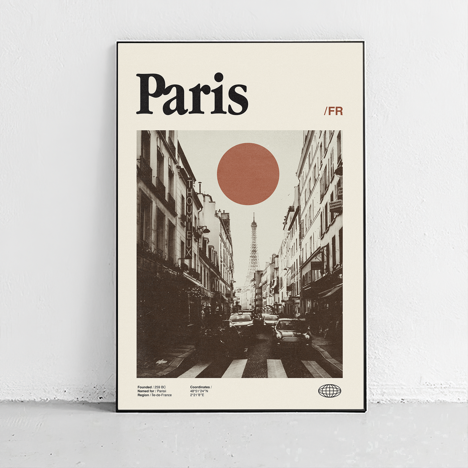 Bring the beauty of Paris, France into your home with this modern art print. Designed in a vintage-inspired midcentury modern, minimalist style, this poster makes the perfect gift for travelers, architecture lovers, or anyone with a special connection to Paris.