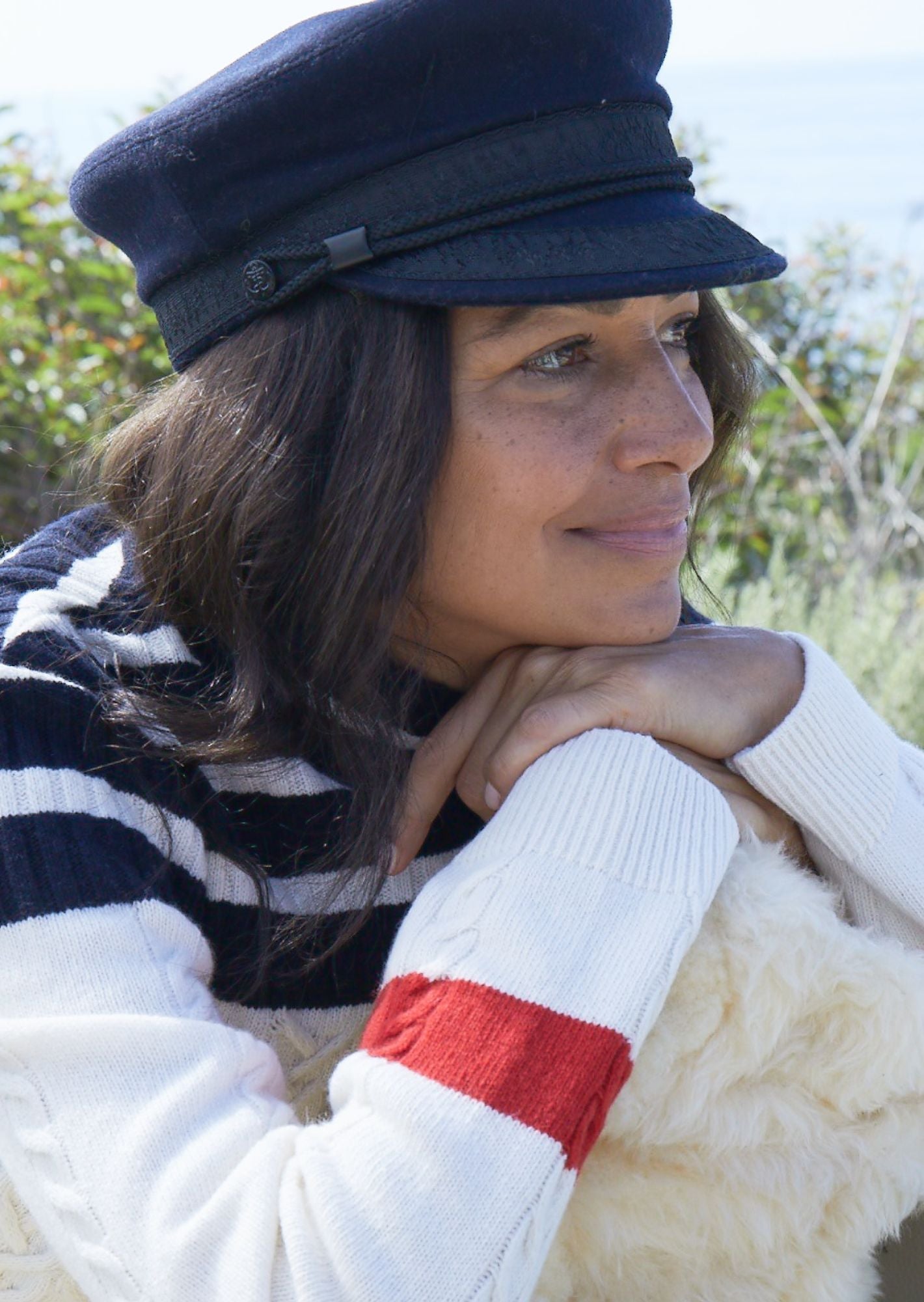 A cap is a must-have for those seeking that nautical look. To nail the sea dog look, team with a smock top. You could also wear it with more feminine pieces for a pop of style.