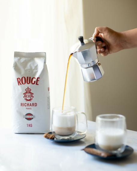 Rouge Richard is the art of French roast with a unique blend of both balanced and aromatic, with an outstanding long finish.  This blend of fine Arabica with a touch of the highest quality Robusta offers a great body and richness with a harmonious aromatic balance.