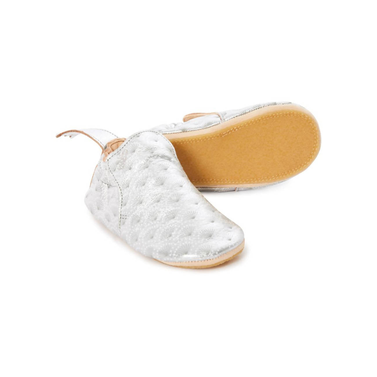 The Easy Peasy ā€œMooā€ line offers a range of ā€œSecond Skinā€ slippers for newborns and toddlers. The outsole is made with two thickness of chromium-free and undyed sheep leather. It is very soft and ideal for crawling babies. Fitting is made easy for parents thanks to the little handle at the back, which can be used as a shoe horn.Ā A unique and eco-friendly birth gift in its creative cardboard box!