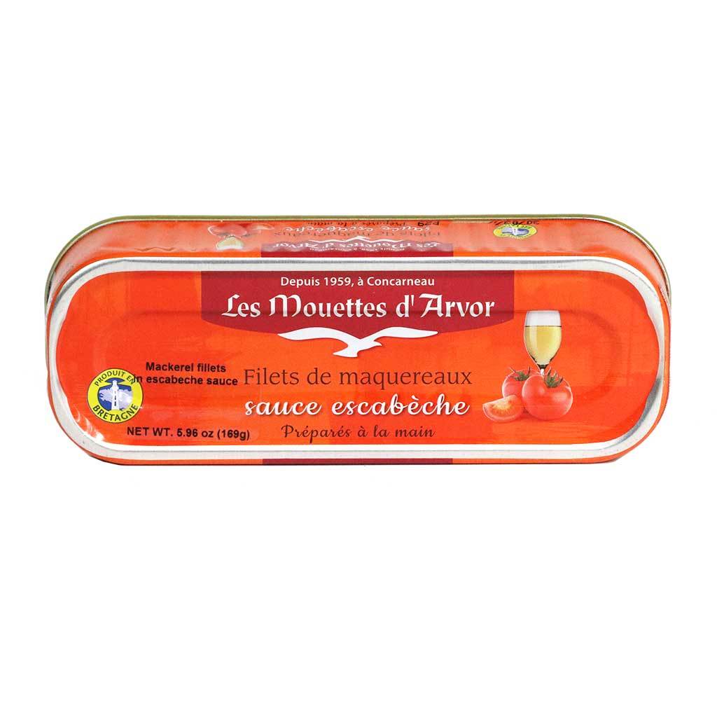 Mouettes d'Arvor Mackerel Fillets rich in Omega-3 and Vitamin B, naturally marinated in Escabeche, a tangy Spanish sauce made with tomato puree and white wine vinegar.