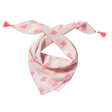 Printed cotton scarf with fancy full embroidery and fluo pompons. A bright accessory for any girl!