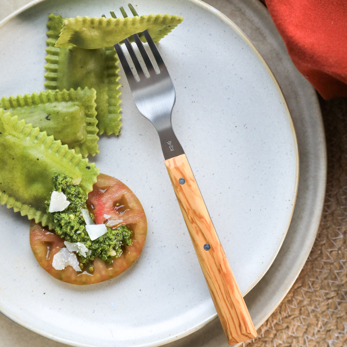 La Table au Soleil ☀️ is an 8-piece flatware set featuring 4 Sylve Olive Wood Forks and 4 Bon Appétit Olive Wood Knives. Each piece is made with beautifully grained olive wood handles, offering a unique, natural aesthetic that enhances both casual and formal settings. The stainless steel tines and blades ensure durability and precision, while the ergonomic design provides a comfortable grip for effortless dining.