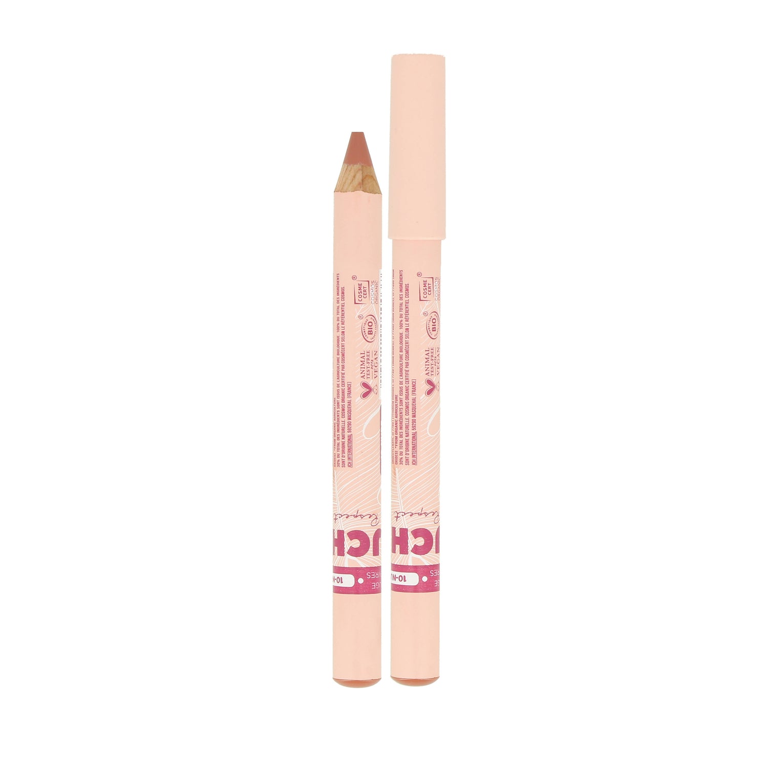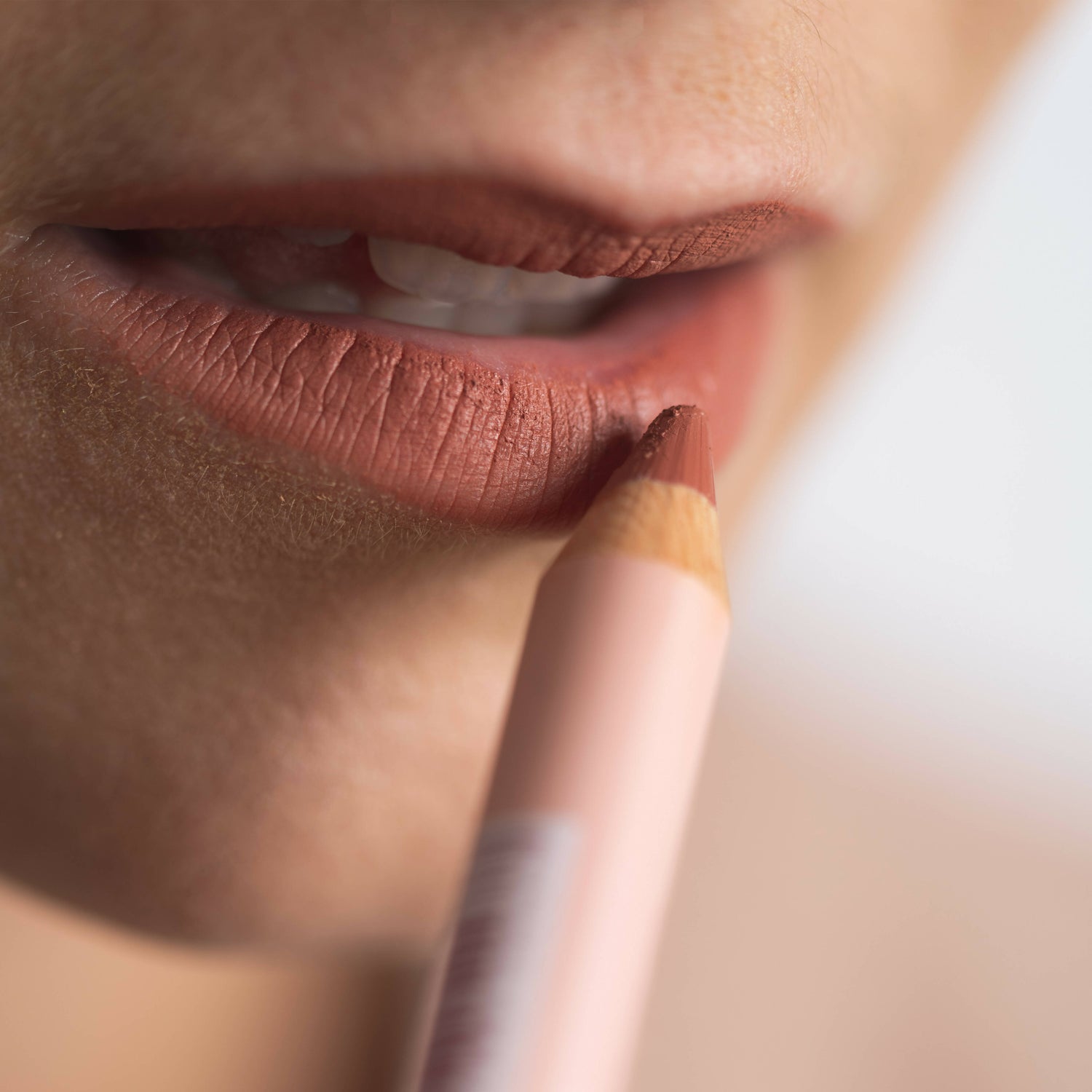 Start with your upper lip and follow the outline of your lip’s natural shape. Starting at Cupid’s bow, move from the tip towards the lower edge following the top of the bow towards the inner corner. Use light, regular touches for a natural effect. Then fill in your lips. Repeat for the lower lip.