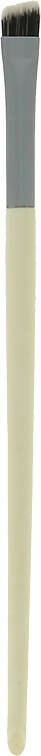 The eye shadow brush is flat and rounded to apply dry shadows. It is ideal for precision eye shadow doses and placement. The eyebrow brush is flat and angled. It is rather stiff and rigid to anchor the shadow within the eyebrow.