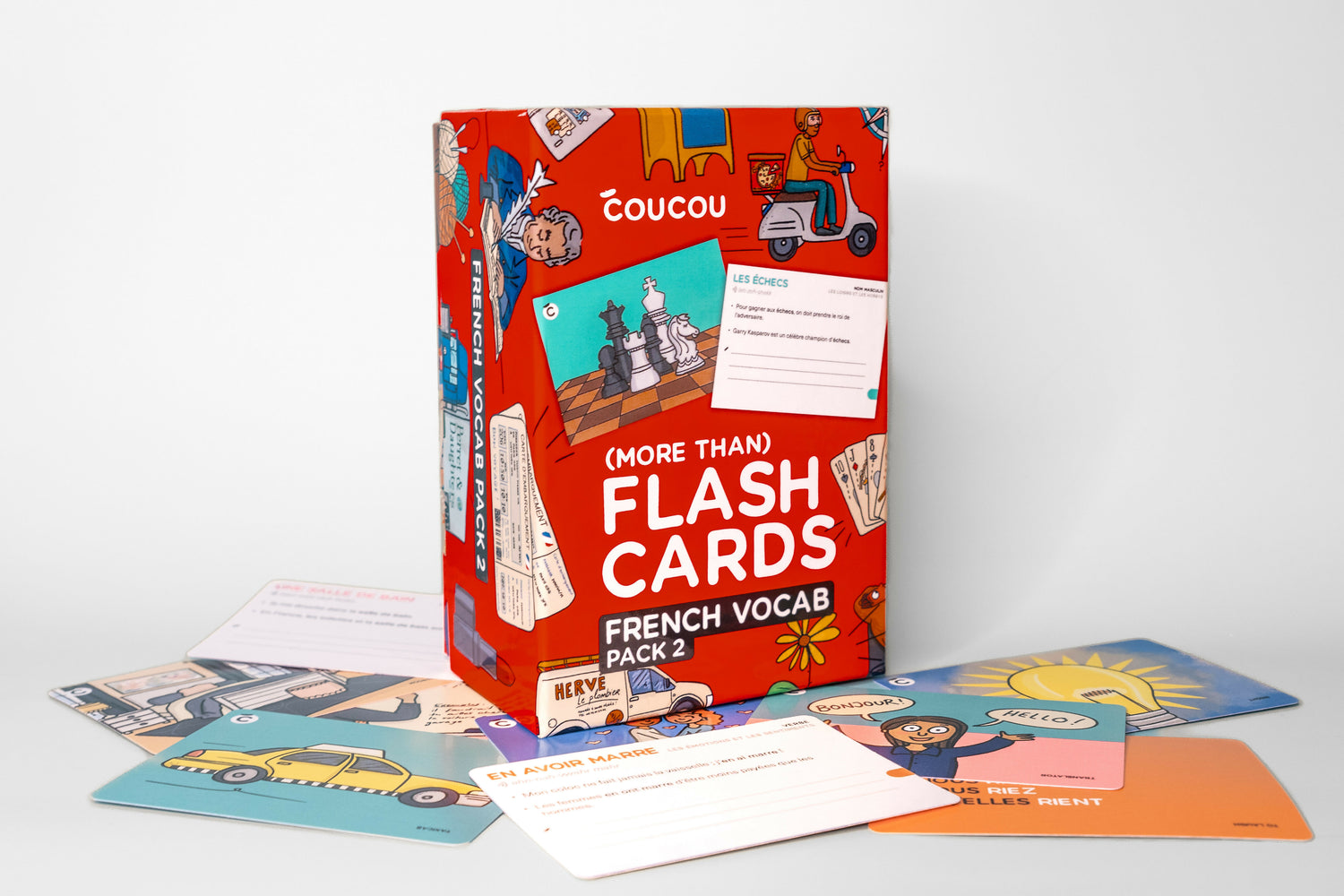 There is no greater gift than the ability to speak multiple languages. With Flashcards, have your children and family members play this fun, educational game! Discover a fun and super effective way to learn French vocabulary with the new Coucou Flashcards!