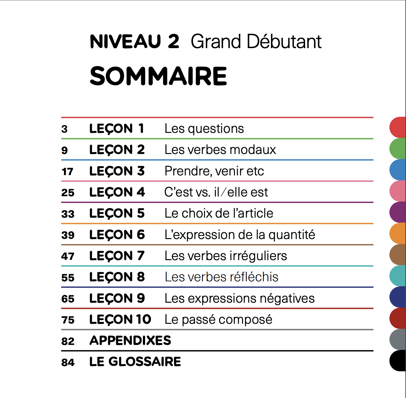 In Grand débutant (Level 2), we learn how to ask questions, express quantities, make negative sentences, and irregular verb present tense conjugations.