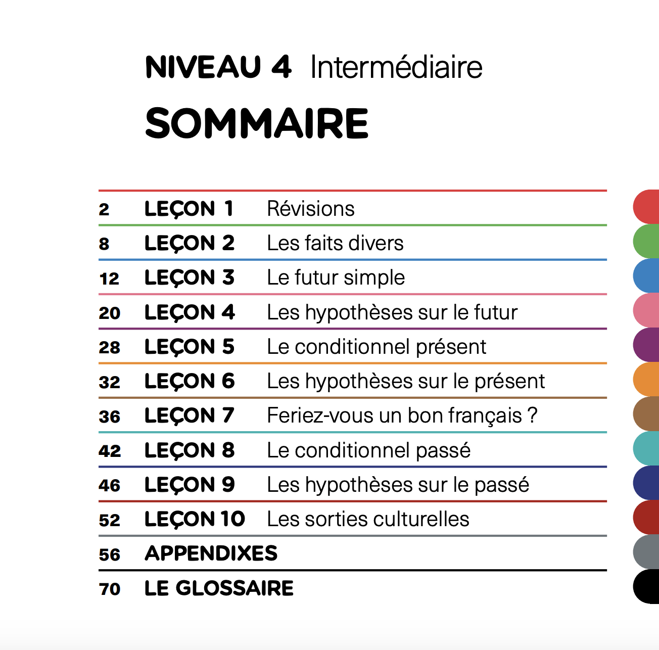 Intermédiaire (Level 4), we learn the future tense, the conditional mood and how to make hypotheses.