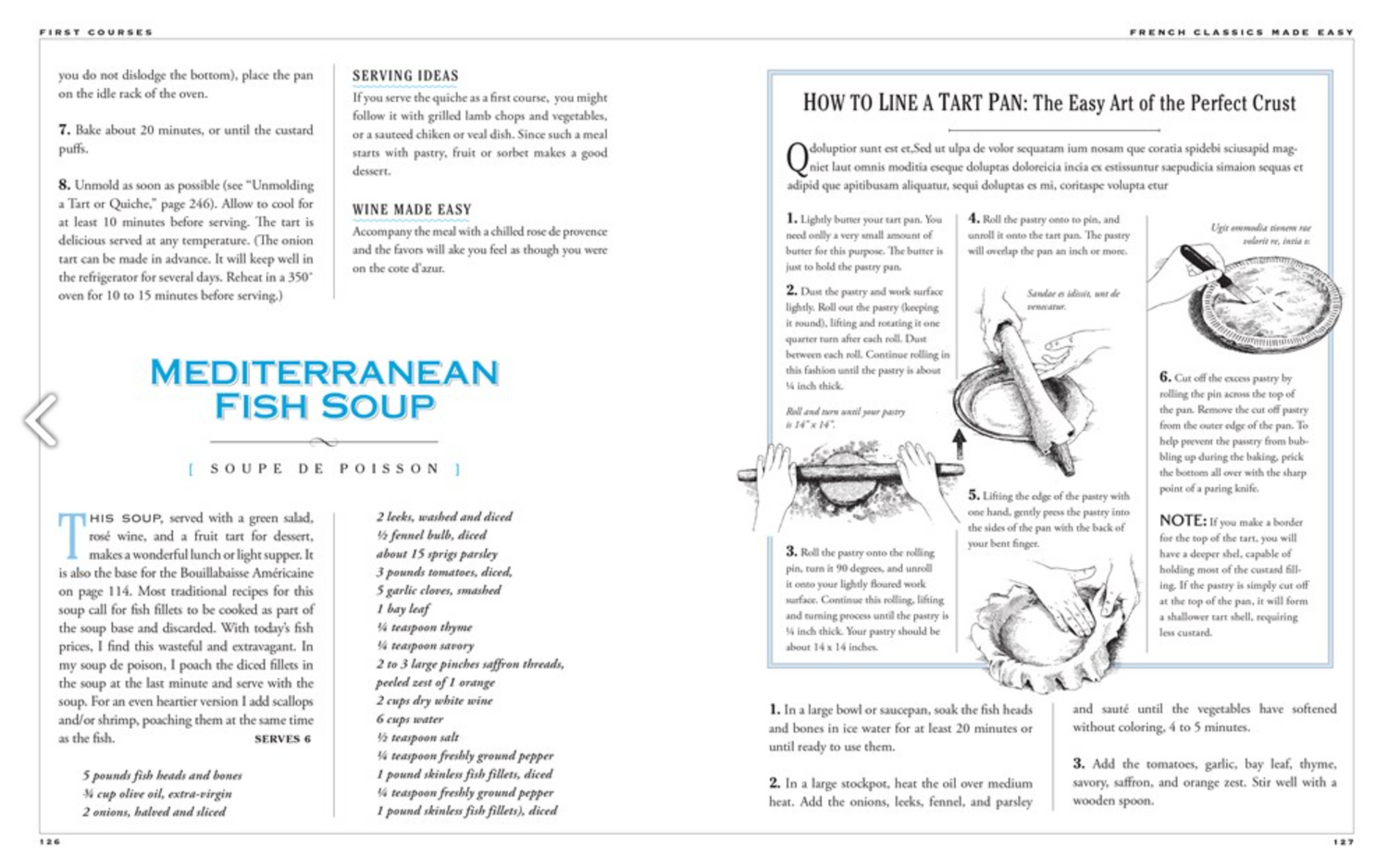 When a step isn’t critical, Grausman eliminates it. If something can be done in advance, he does it. Plus he’s cut the amount of butter, cream, egg yolks, salt, and sugar; the result is health-conscious recipes that don’t compromise the essential nature of the dish. Techniques are illustrated throughout in line drawings. It’s the grandness of French cuisine, made accessible for both entertaining and everyday meals.