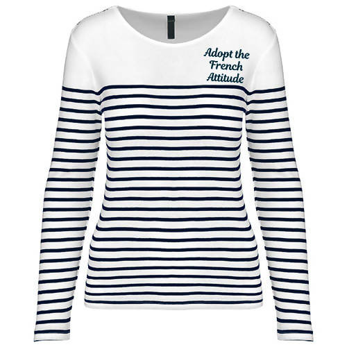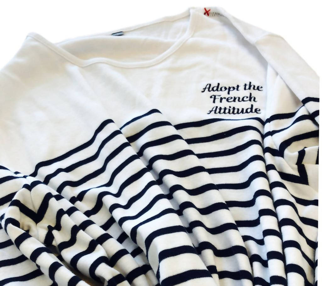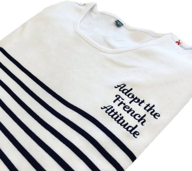 We did it ! A french mariniere with our motto « Adopt the French Attitude » ! Enjoy the beauty of life, the small and the big moments.