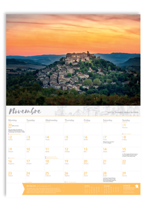 The FRANCE 2026 Calendar is a fantastic year-long reminder of the France you love. This popular year-planner shows the best of France through 14 stunning glossy photographs, brought to you by the FRANCE Calendar team.
