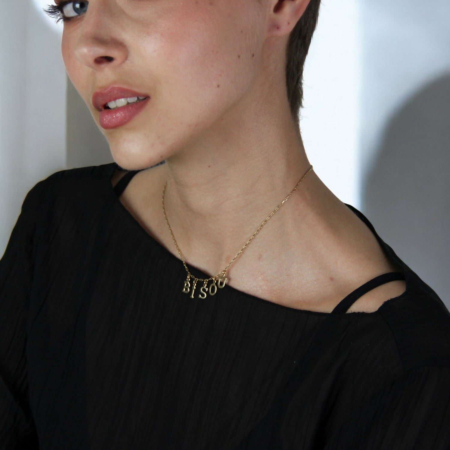 Bisou Love Charms Necklace - Say it with a kiss – or with a golden "Bisou."