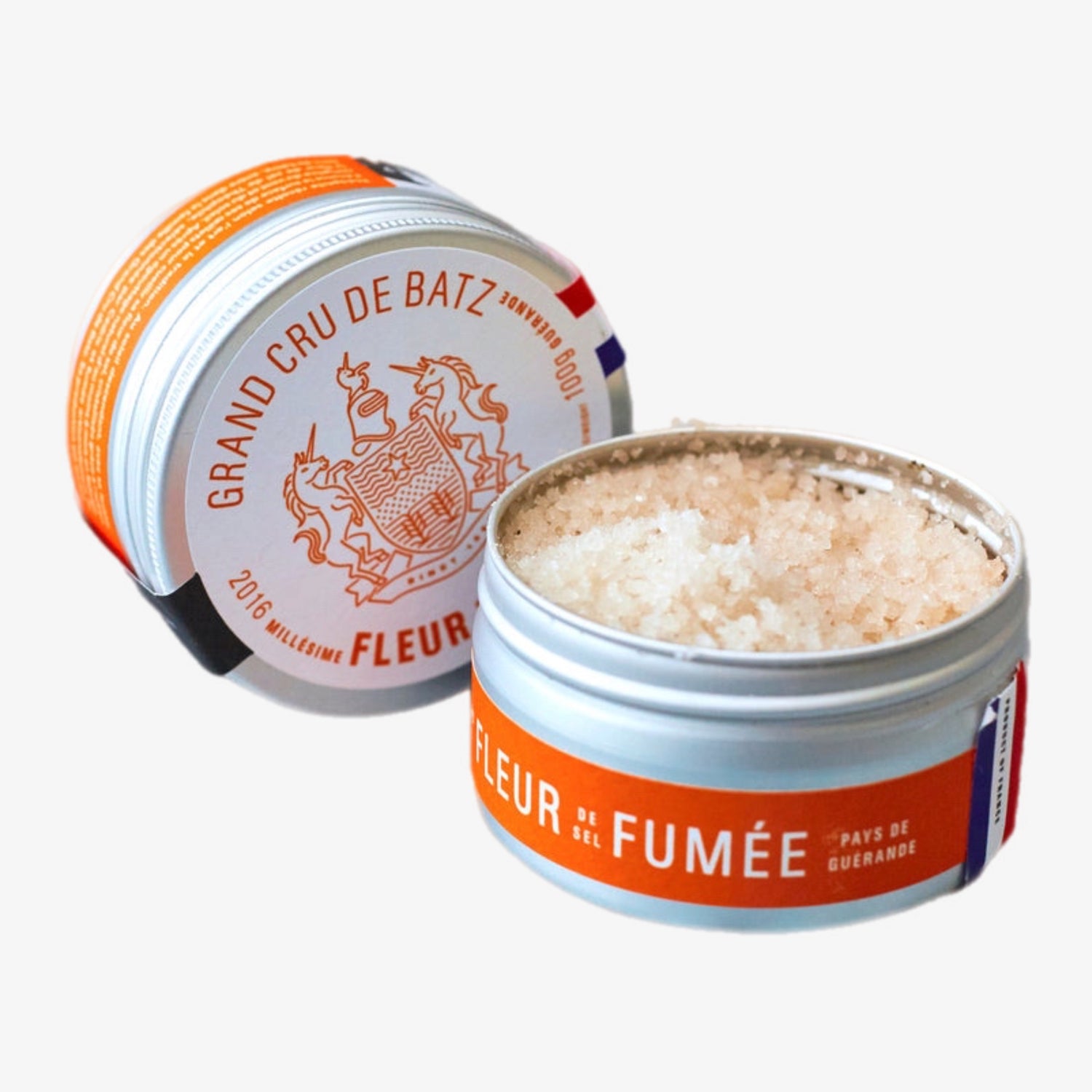 Elevate your cooking with the Grand Cru de Batz Smoked Sea Salt, a rare artisan salt harvested from the legendary salt marshes of Batz-sur-Mer in Brittany, France. This premium fleur de sel is aged for six months and then cold-smoked with beechwood, creating a complex and refined aroma that enhances any dish.