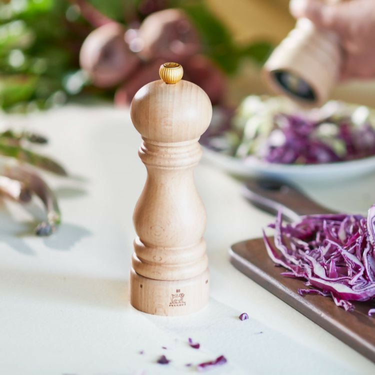Close your eyes and picture a pepper mill, and the iconic shape of Peugeot's Paris mill will surely come to mind. Replicated often but never duplicated, the Paris collection has become a world-wide favorite from celebrity chefs to home cooks. Made in France, Paris comes with a curved shape for an ergonomic grip and an elegant presentation. Paris u'Select is equipped with a six-stage grind adjustment, allowing you to control the texture of your grind by twisting the ring at the base of the mill so you always get the output you're looking for. Freshly ground pepper elevates any recipe, a fine grind will pack more of a punch on heat, and a coarse grind lets even more of the peppercorn's aromas escape. Salt can instantly increase the depth of flavor of your dishes and can also add a sparkle when coarsely ground on top right before serving. Welcome on icon of design into your kitchen and season your dishes for years to come with Peugeot.