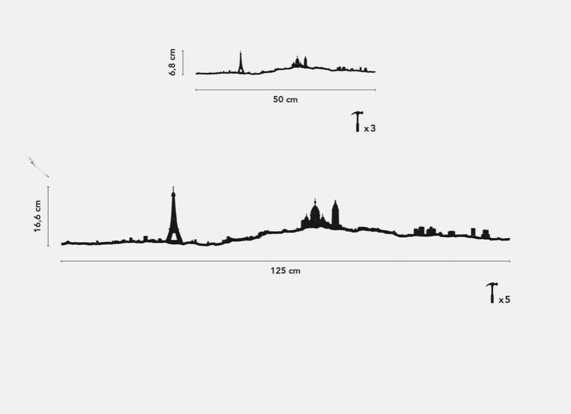 The Metal Line Paris accurately renders a laser-cut steel silhouette of Paris, based on the view from La Defense. Therefore, you can easily mount it on the wall with 3 small nails (included in your box).