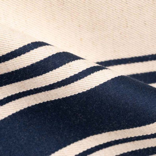 The 7 bold blue bands symbolize the 7 Basque provinces. Woven in a thick linen-cotton blend (mƩtis), the fabric features natural irregularities that enhance its artisanal charm.