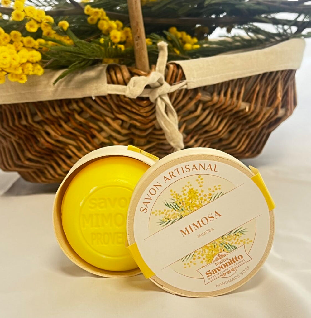 Delight in the luxurious Mimosa-scented soap, enriched with nourishing sweet almond oil, perfect for gently moisturizing your skin. The soap comes packaged in a beautiful wooden box crafted from French, reminiscent of the iconic Camembert cheese box, adding a charming, authentic touch. Ideal as a thoughtful gift or for personal indulgence, this soap combines natural ingredients with traditional French craftsmanship, making it a must-have for anyone who appreciates elegance and sustainability.