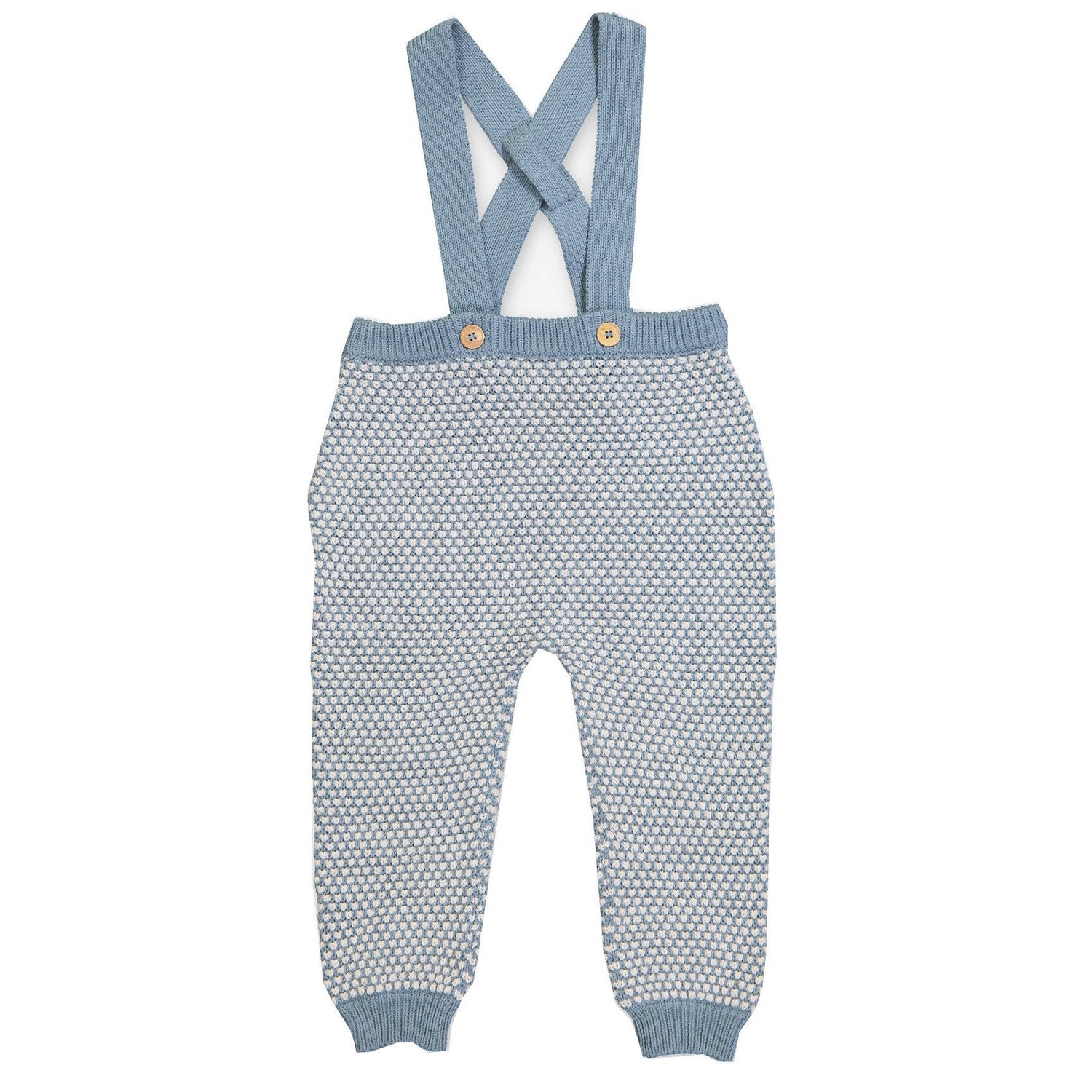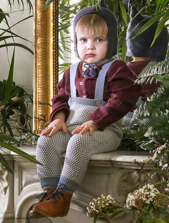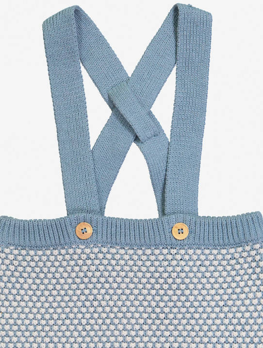 Crafted with soft organic cotton blend, natural wood buttons fasten the straps. Easy to wear with a plain t-shirt, this is such an adorable baby - girl or boy - look for this fall-winter season.