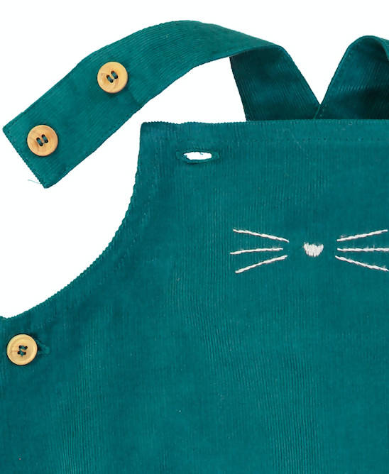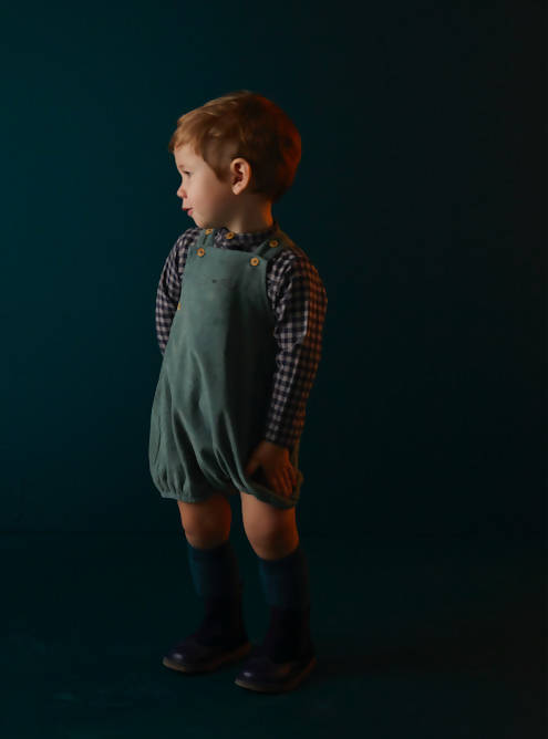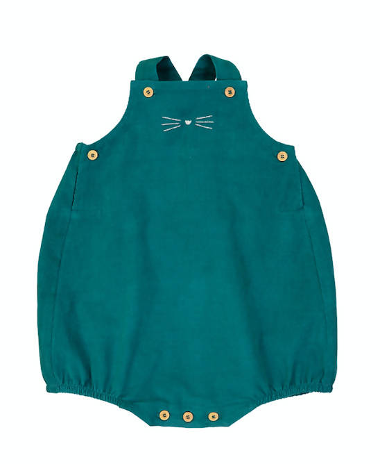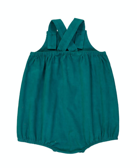 This sweet overall is crafted with a handstitch detail and wood button closures. Both elegant and easy to wear for either a baby boy or girl.