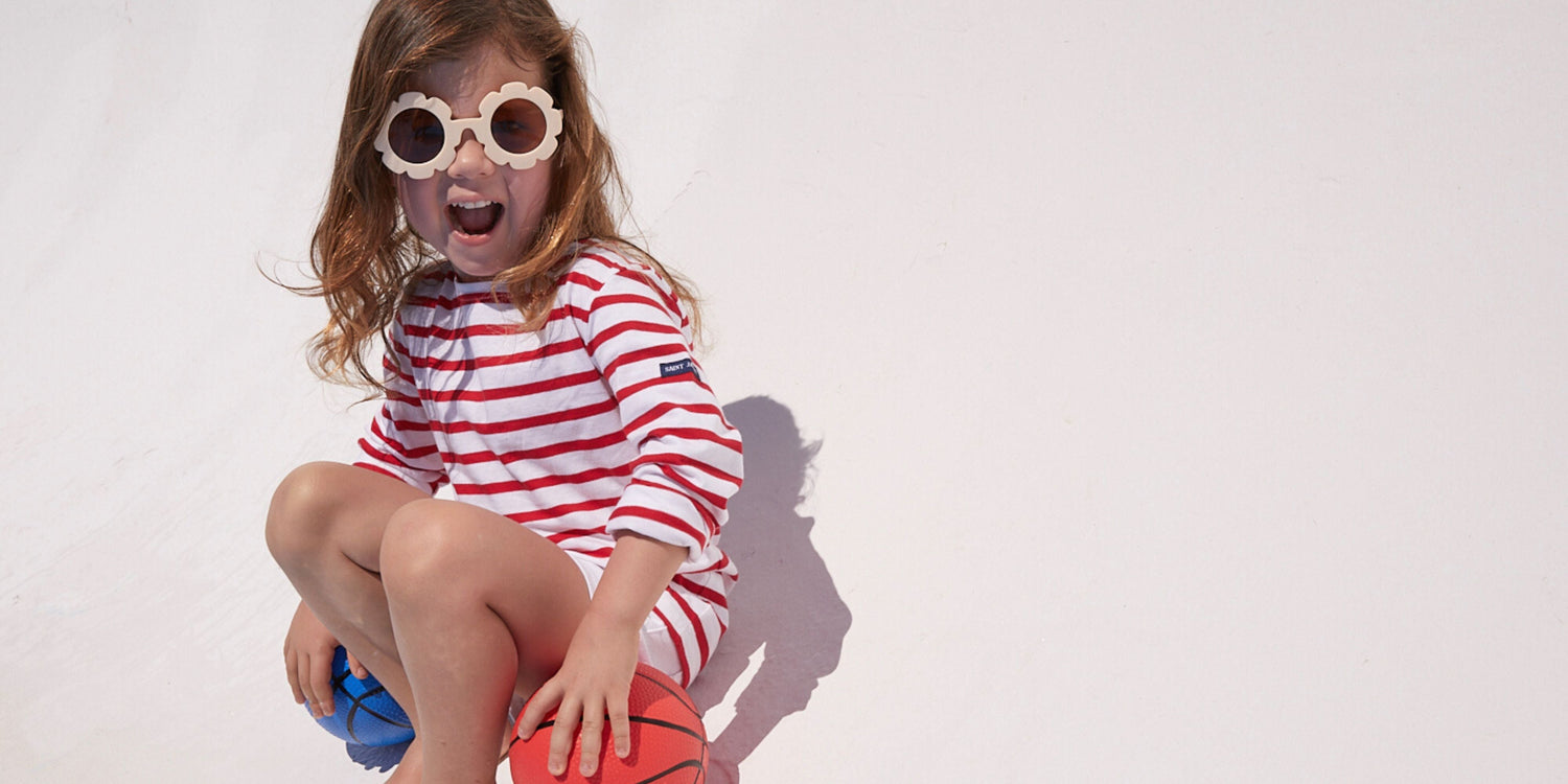 Saint James MINQUIERS KIDS - Authentic Breton Shirt for Kids in Soft Cotton (WHITE / RED)