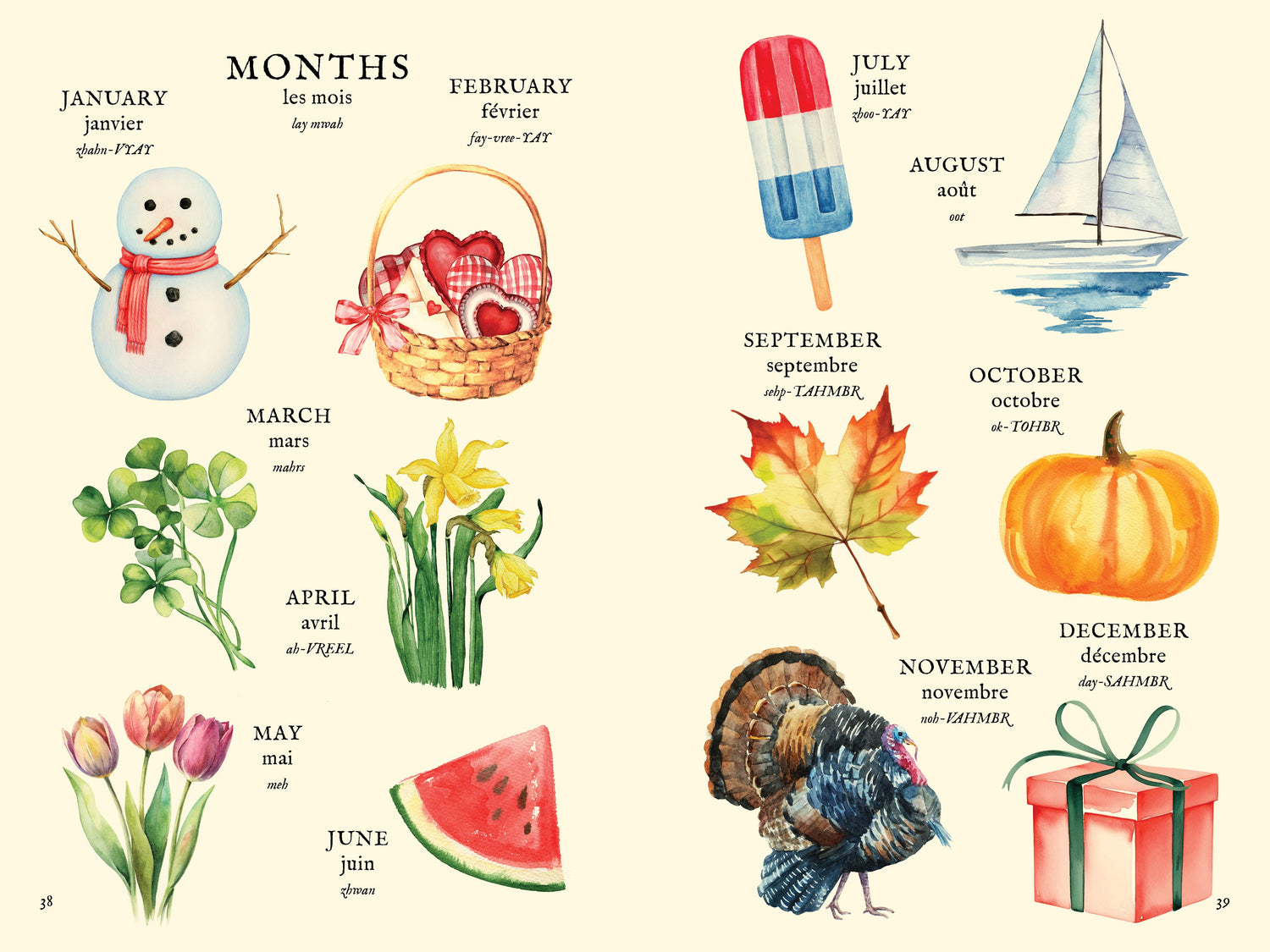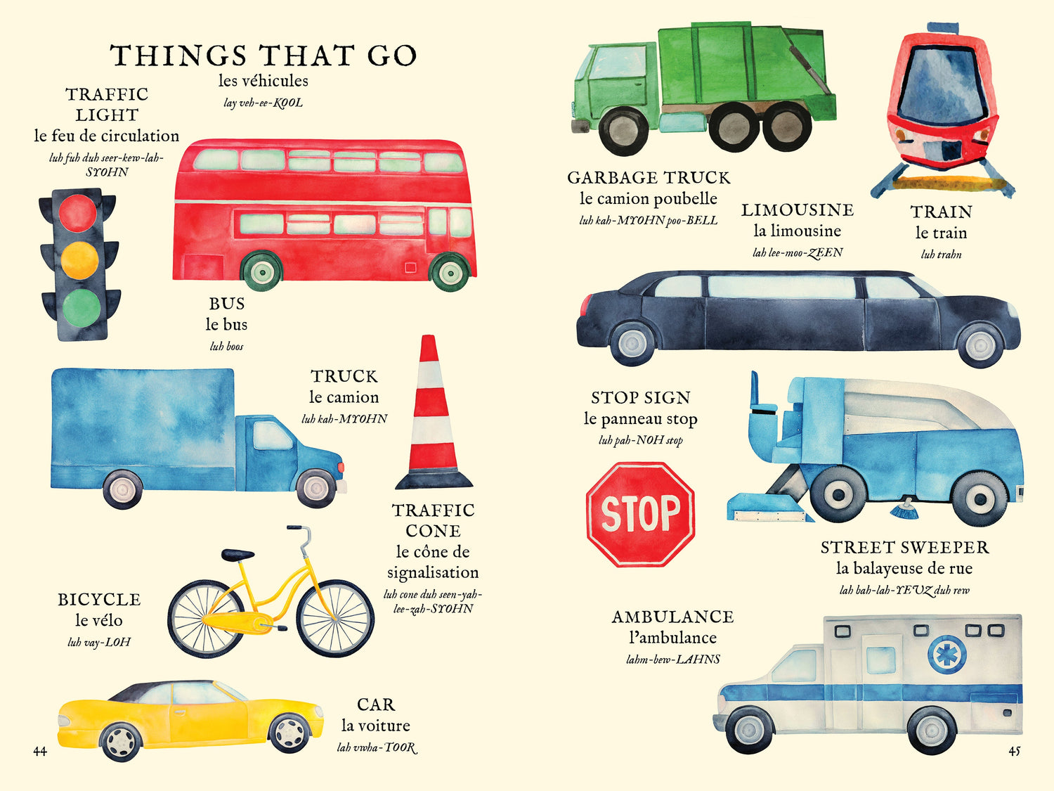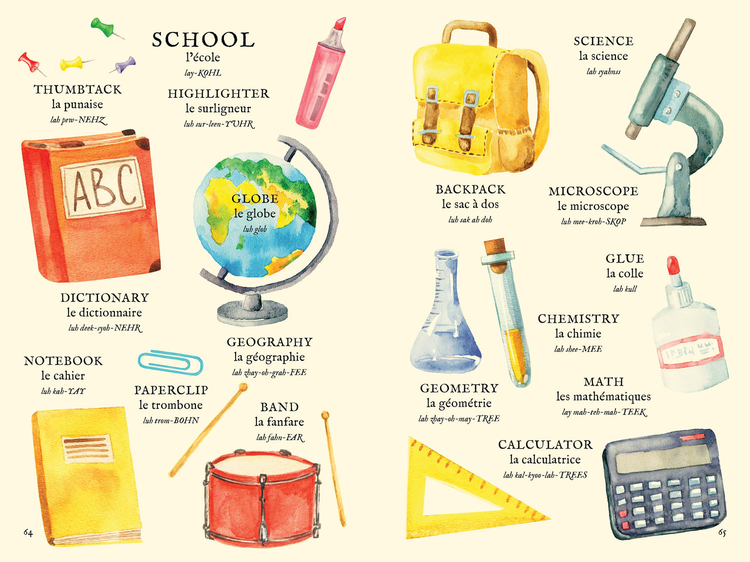 Helps kids learn over 400 everyday words in French with beautiful watercolor illustrations and easy pronunciations!
