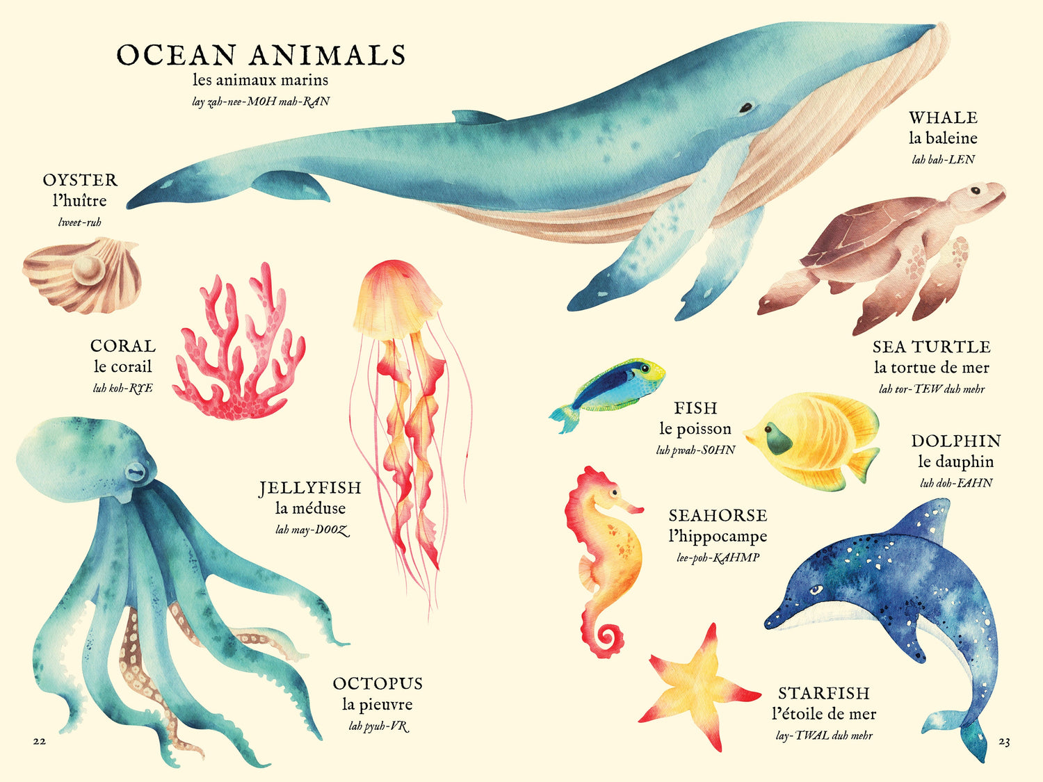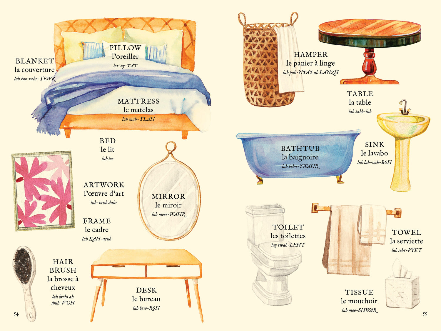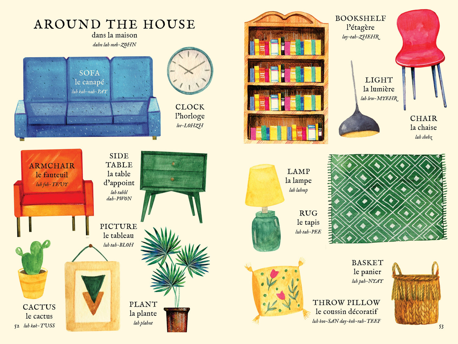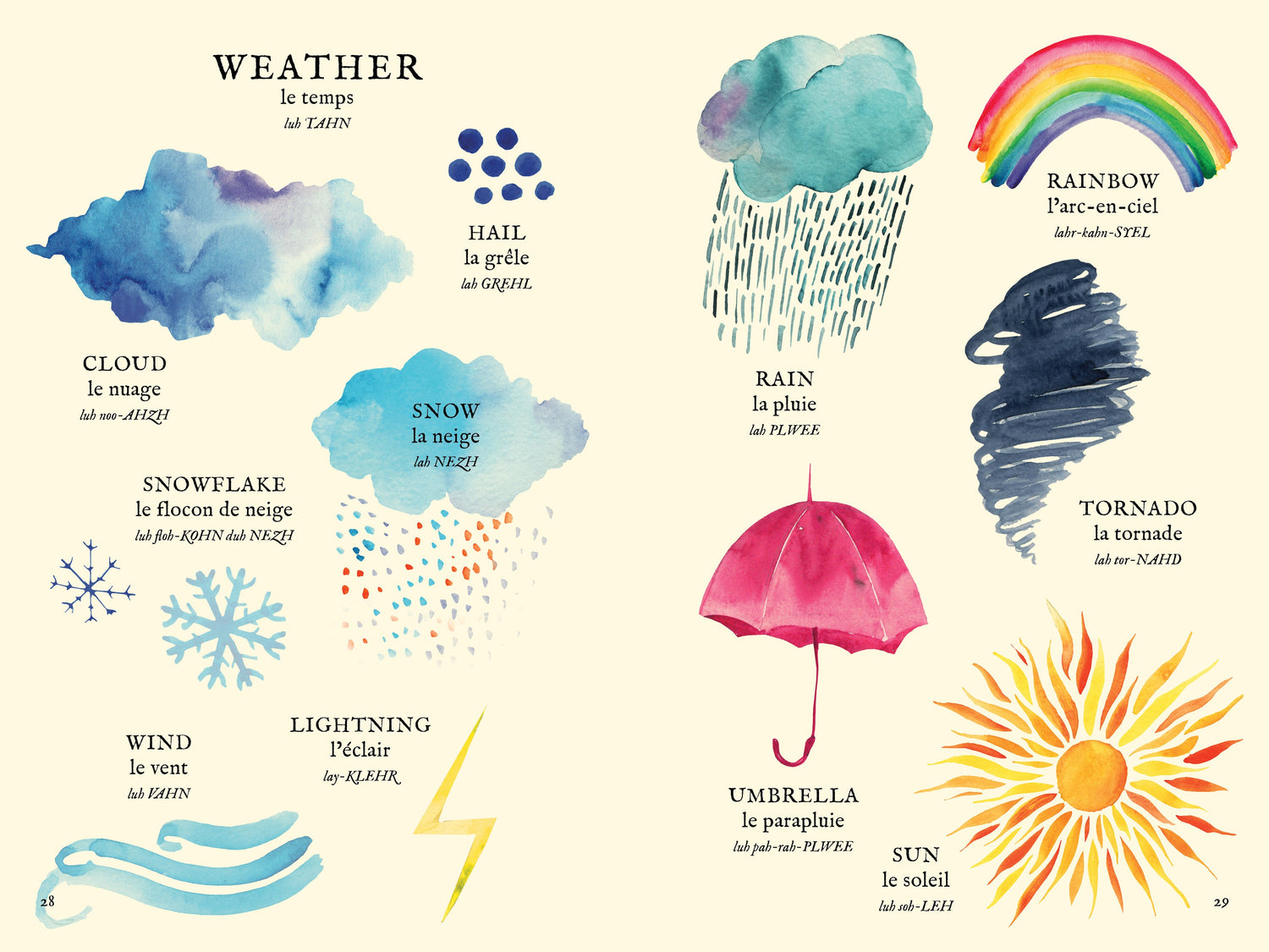 Helps kids learn over 400 everyday words in French with beautiful watercolor illustrations and easy pronunciations!