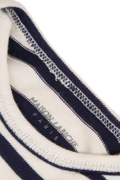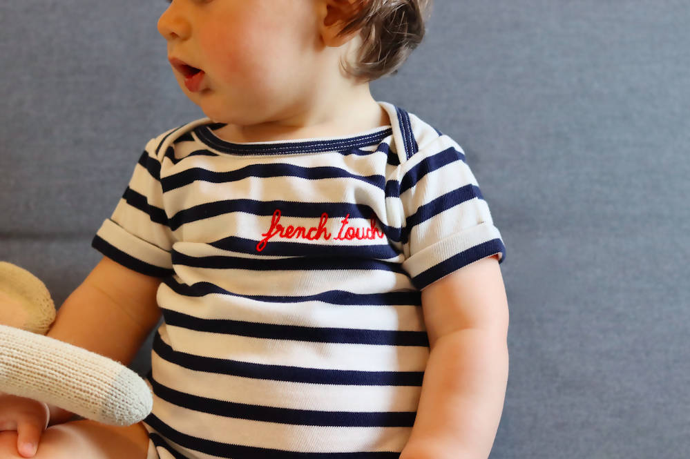 Maison Labiche's baby onesie is a must-have, featuring short sleeves and a comfy wear with a boat neck. The French touch embroidery is a reference to the subtle French charm.