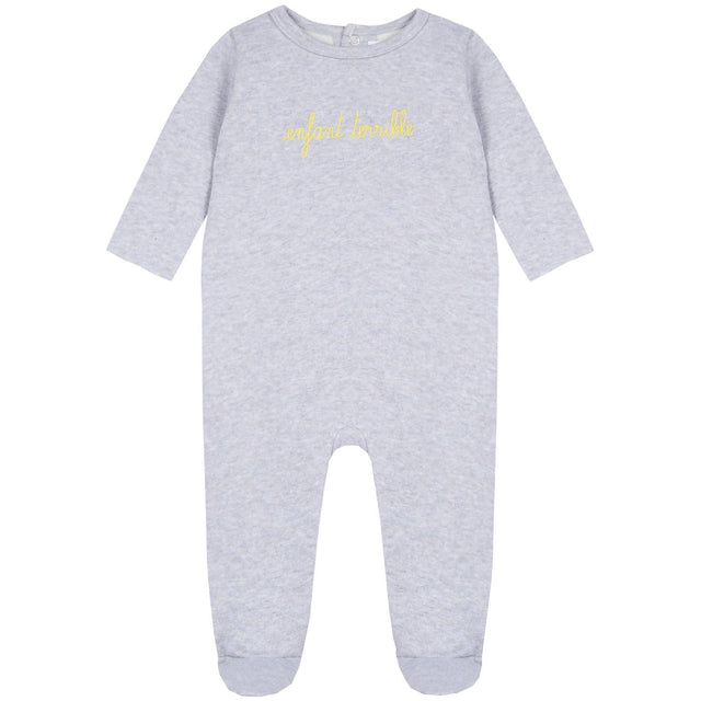 Maison Labiche's baby underwear embroidered is a must-have. Featuring long sleeves and soft on the inside, it has an easy snap button opening in the back. The beautiful yellow ''enfant terrible'' embroidery (unruly child) is for the style.