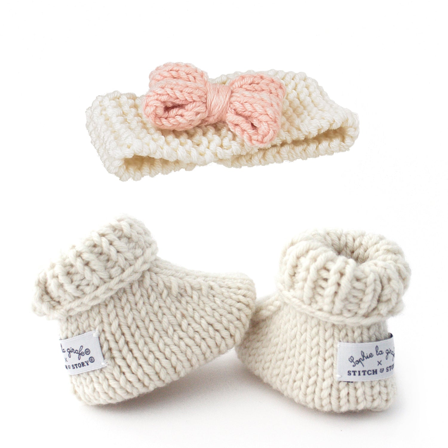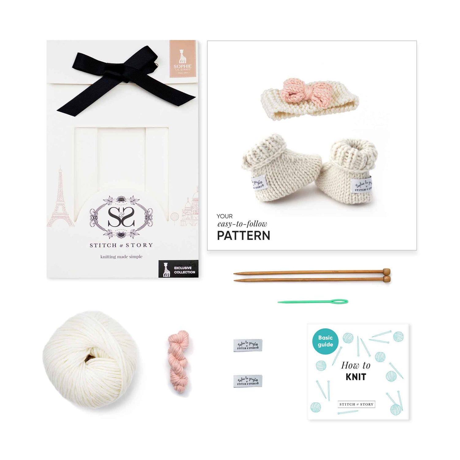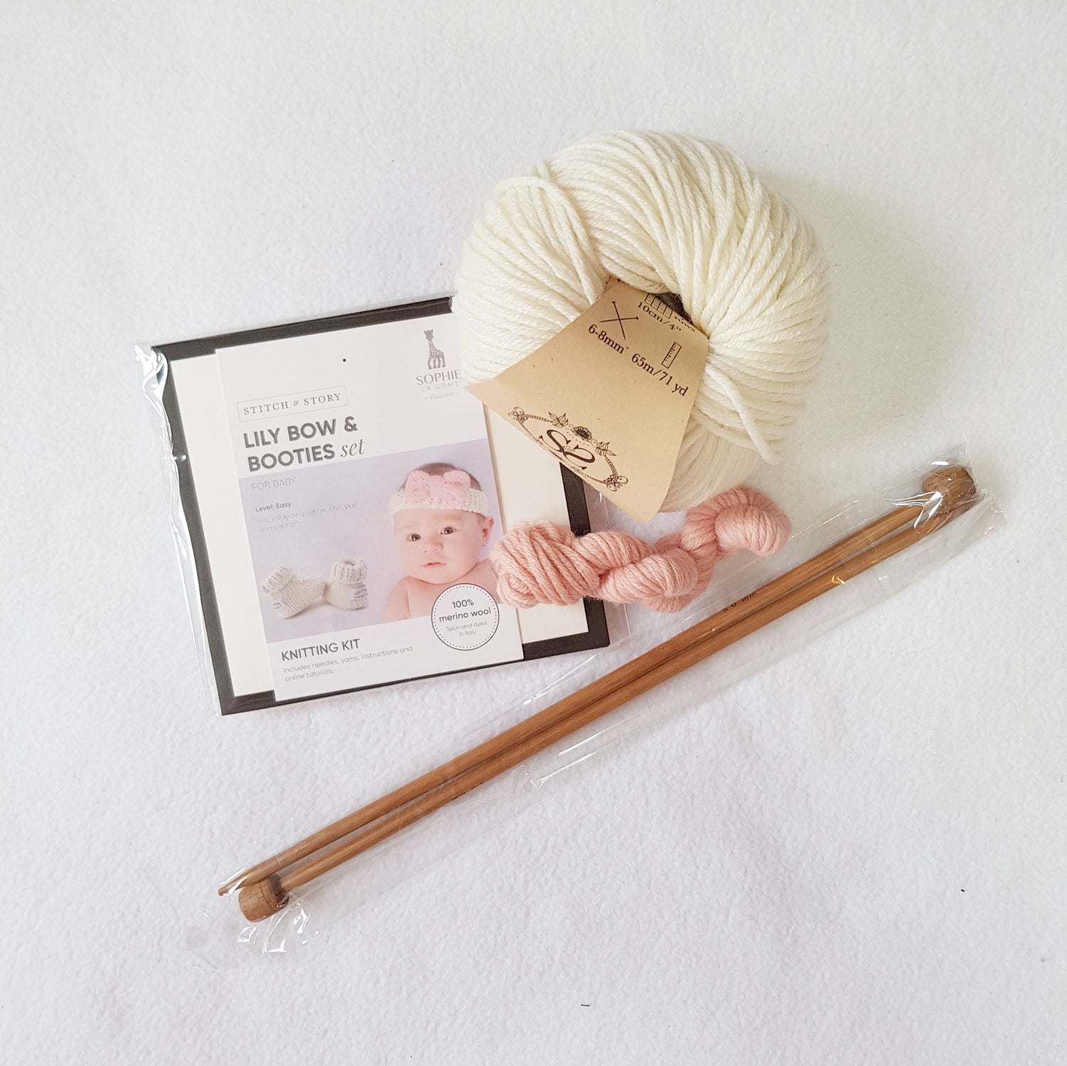 Sophie's Lily Bow & Booties knitting Set | Rose quartz Stitch & Story