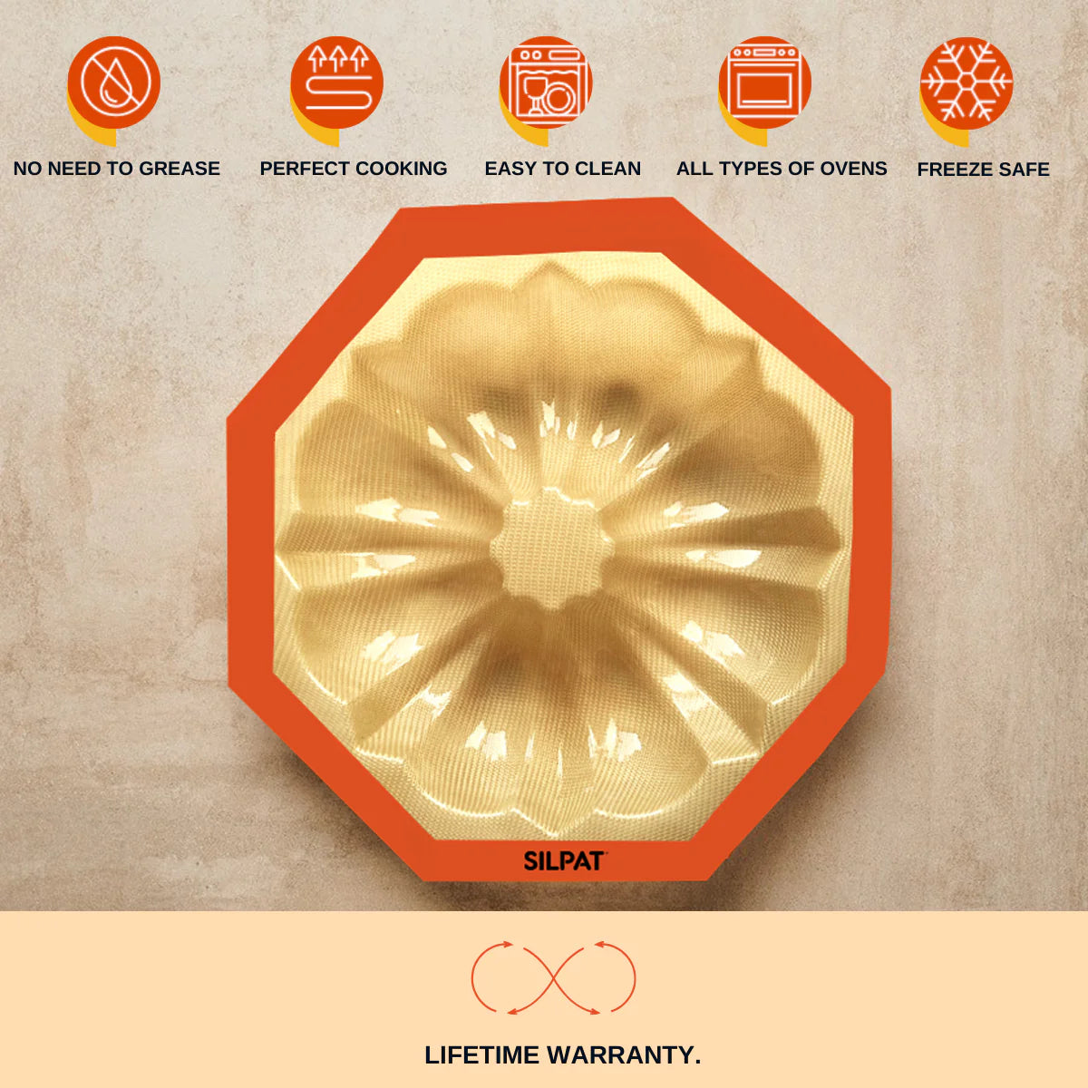 The original non-stick Silpat® Rosace Mold—adds an elegant rosette design to cakes, entremets, and more. Durable, reusable, and perfect for flawless, show-stopping results.