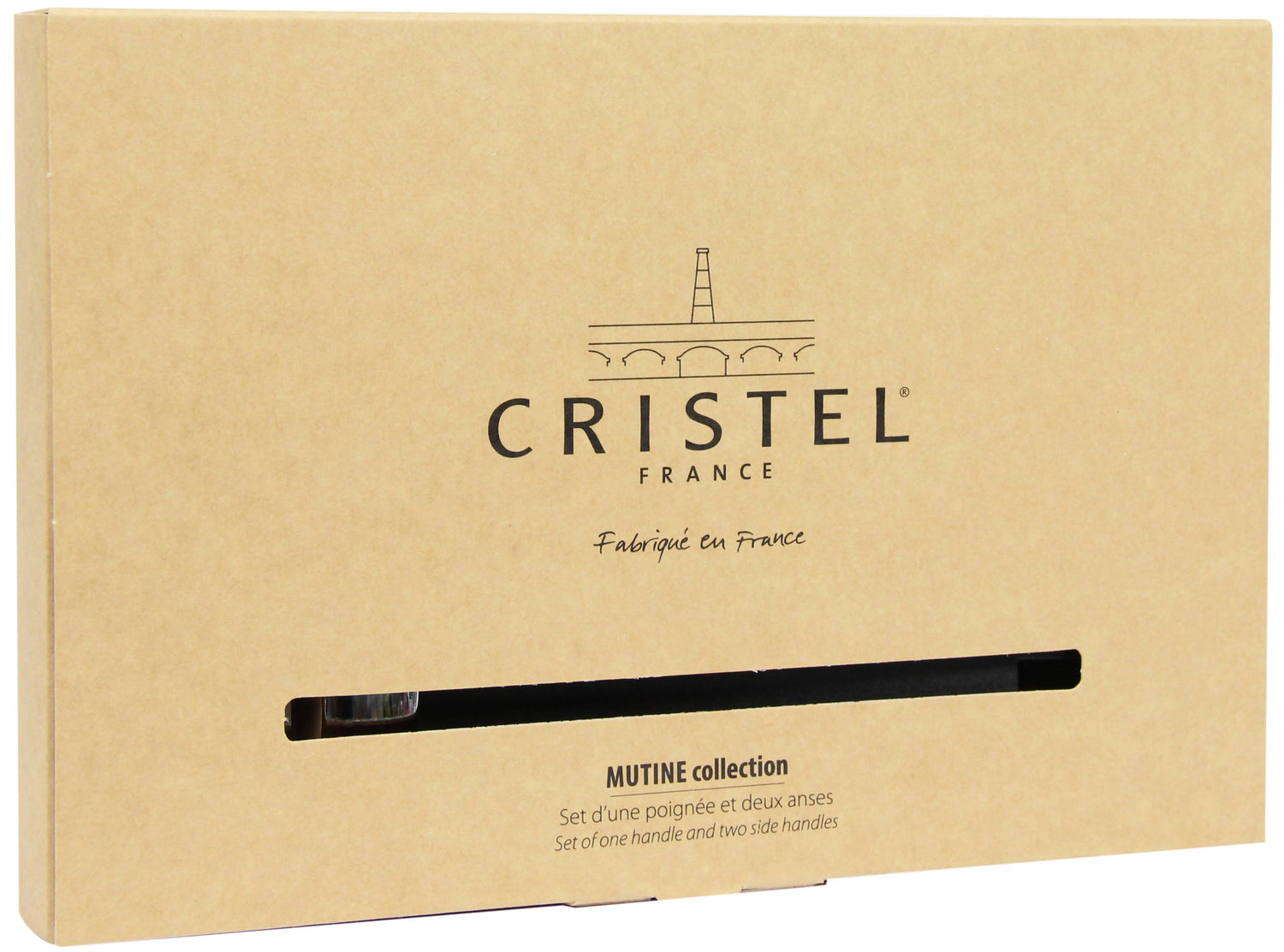 Strate set of handles is combined with brushed stainless steel cooking utensils from the Strate Detachable collection, but is also suitable for all pots, pans, … of the various Cristel detachable collections.