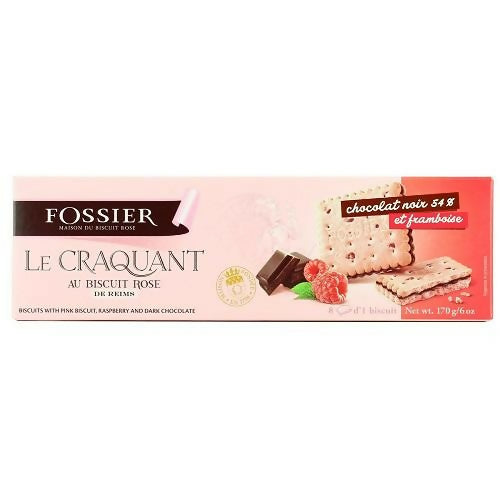 At French Wink, we are delighted to present the Fossier Pink Biscuit with Raspberry and Dark Chocolate (170g), a luxurious treat that combines the rich heritage of French biscuit-making with the vibrant flavors of raspberry and dark chocolate.
