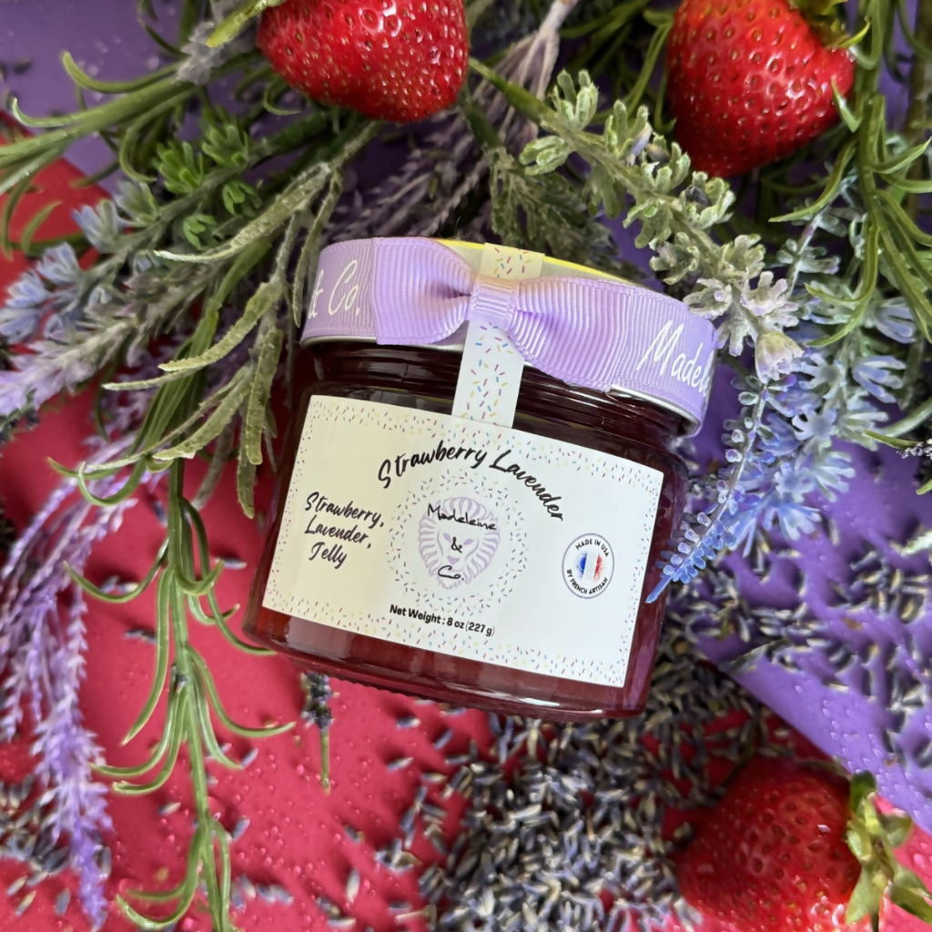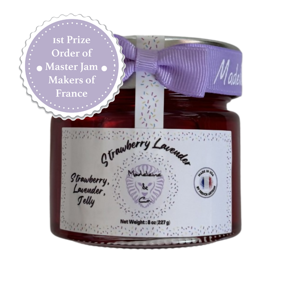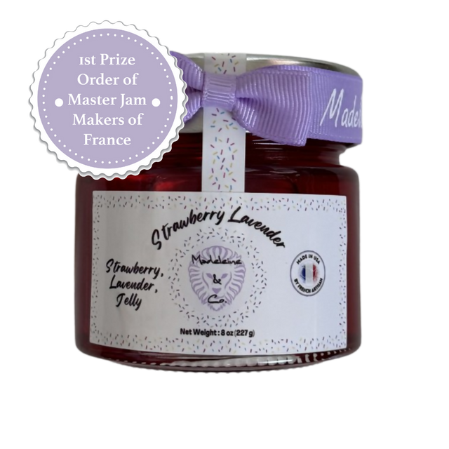 Madeleine & Co.'s Starberry Jelly, awarded the title of Best Strawberry Jelly in France, blends ripe strawberries with delicate lavender for an extraordinary flavor experience. Crafted by a French artisan in the USA, this jelly captures the essence of traditional French craftsmanship, using natural ingredients that highlight the beauty of this unique combination.