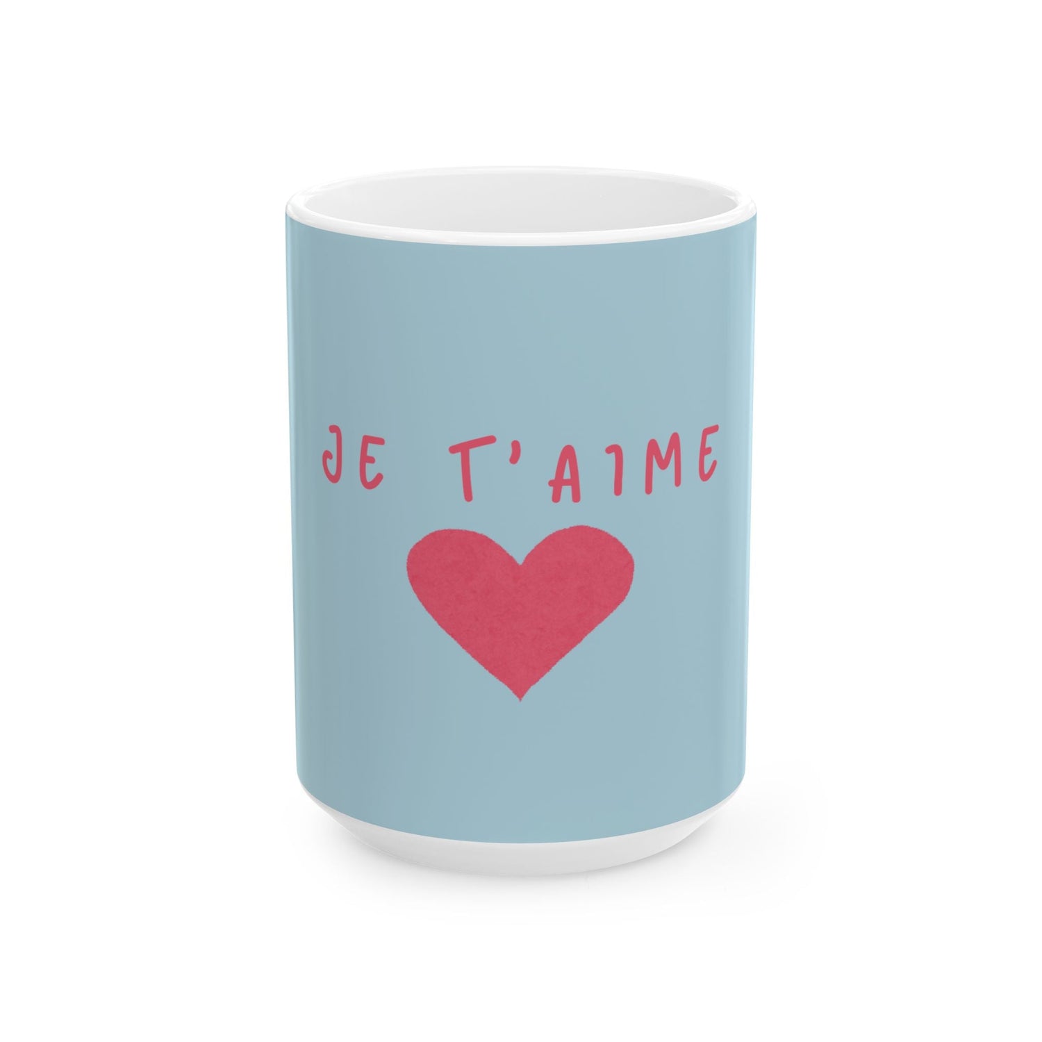 Start your day with a splash of color and positivity with this sweet Je T'aime ceramic mug. Perfect for coffee, tea, or any of your favorite warm beverages, it adds a loving touch to your morning routine.